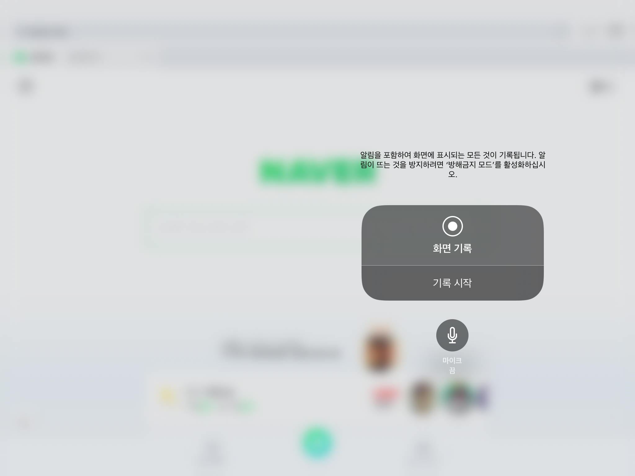 화면 기록 버튼을 한 번 누르면 바로 화면 녹화가 시작됩니다. 그리고 화면 기록 버튼을 길게 눌러 주면 설정 화면이 나오는데 이곳에서 마이크를 통해 소리까지 녹화 할 수 있습니다. 설정이 끝났으면 기록 시작을 눌러 주세요. 그러면 3초 있다가 화면 녹화를 시작합니다.