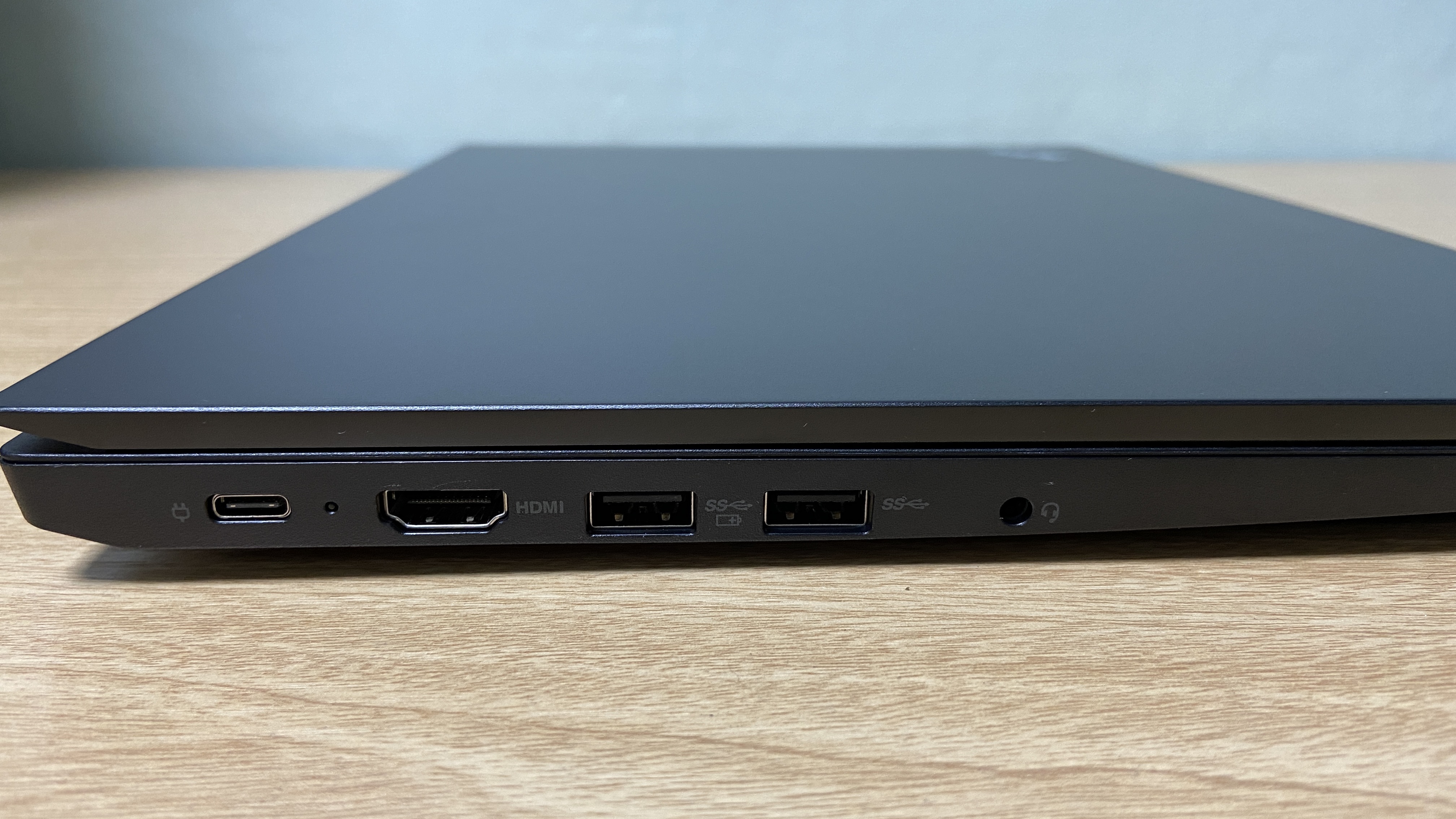 충전을 위한 타입C포트, HDMI, USB 3.1포트 2개, 이어폰잭이 왼쪽에 있습니다. 오른쪽에는 마이크로 SD카드 리더, 유선랜포트, 켄싱턴 락이 있습니다. 씽크패드는 비즈니스 노트북을 많이 활용하는데, 포트가 다양하게 많아 아주 좋습니다.