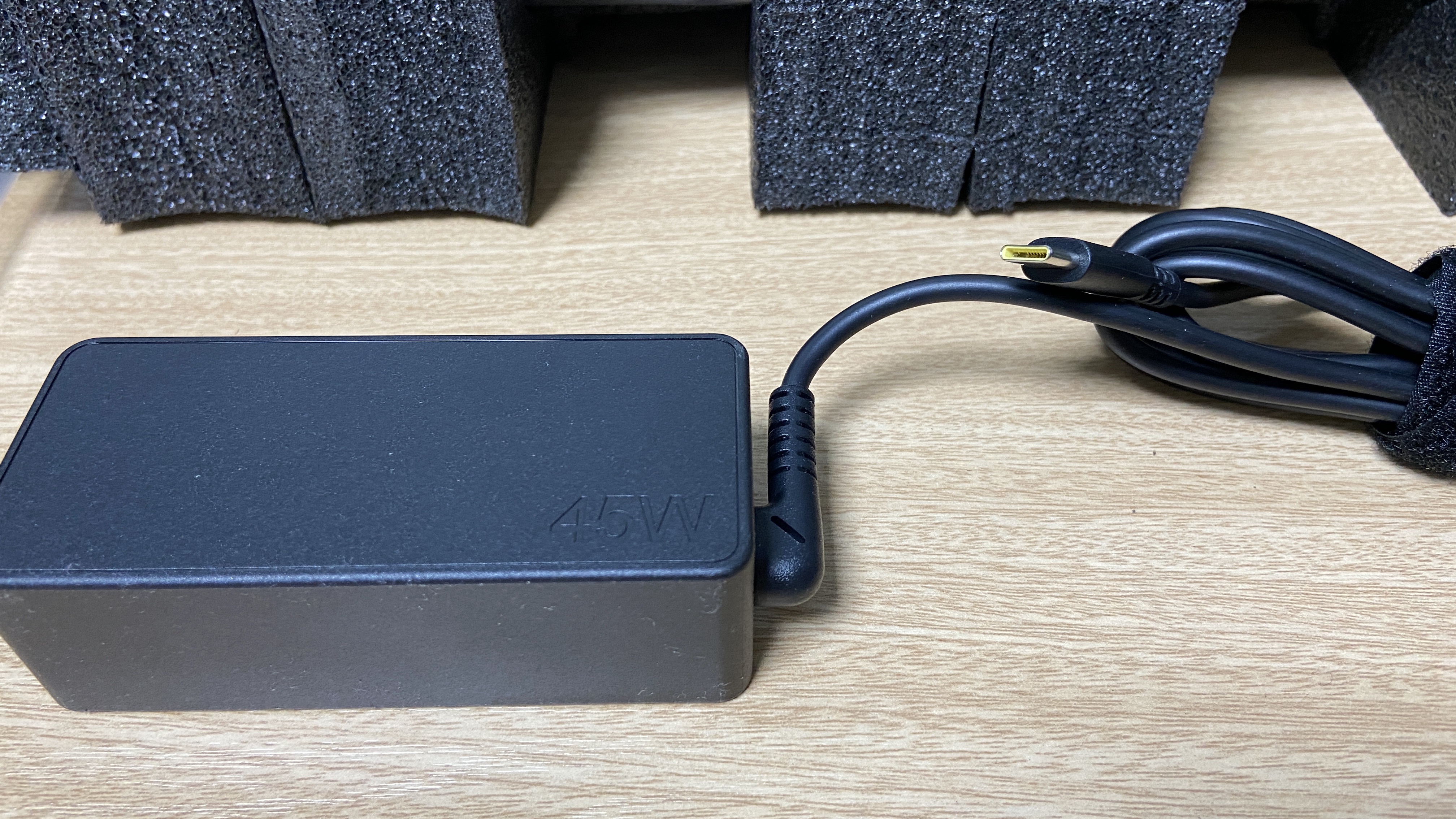 제품 구성은 노트북 본체와 충전 어댑터가 끝입니다. 레노버 씽크패드 e495를 구매하게 된 이유중 하나가 PD충전이 가능하다는 부분입니다. C포트를 통해 충전은 물론 필요한 경우 모니터와 연결해 사용이 가능하다고 합니다. 기본 충전기는 45W충전기인데, 65W충전기를 별도 구매하면 더 빠르게 노트북을 충전할 수 있습니다. 하지만 가성비를 보고 저렴하게 구매한 모델에 어댑터를 추가 구매할 필요는 없어 보입니다.