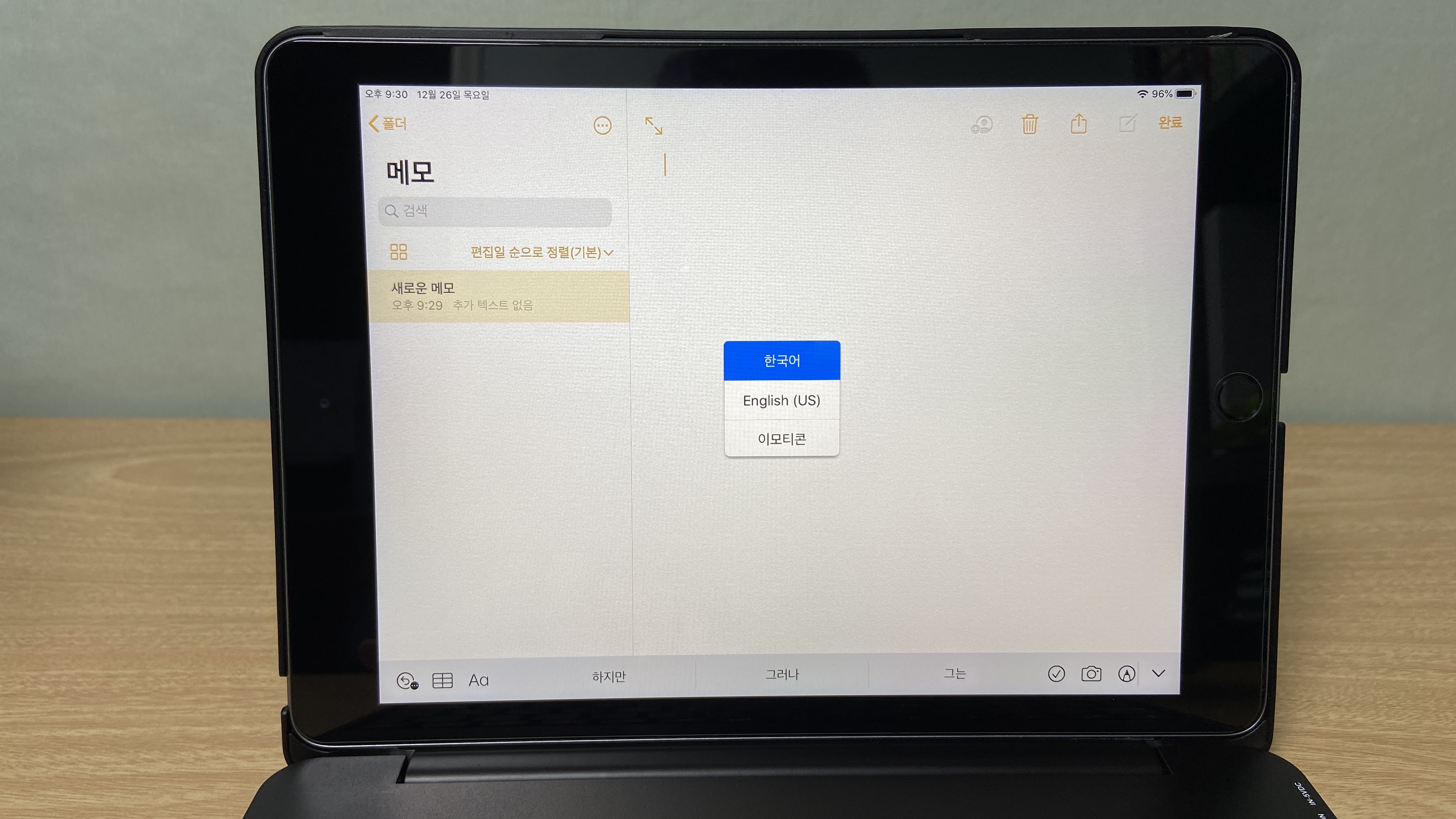 아이패드 6세대가 9.7인치 태블릿입니다. 거기에 맞춰 키보드를 만들다 보니, 키보드가 작기 때문에 오타가 자주 발생합니다. 그래도 다행인건 자동완성을 통해 오타를 수정할 수 있습니다. 다만 자동완성이 내가 의도하지 않은 단어가 나오기도 합니다. 오타를 줄일 수 있어서 좋지만 원하지 않는 단어가 나올 수 있어 자동완성을 키놔야 하나 꺼놔야 하나 고민입니다.