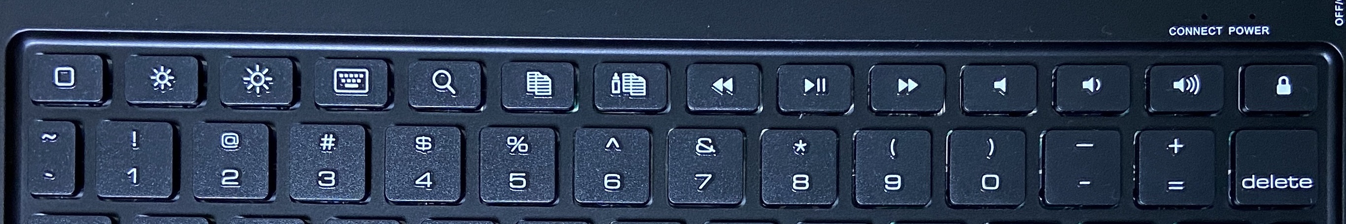 맥북을 써보지 못했지만, 키보드 구성은 맥북과 비슷한거 같습니다. 우측 상단에 전원 버튼이 있습니다. 우선 전원 버튼을 켜고 fn키와 c키를 같이 눌러 블루투스 연결을 해야 합니다. 저렴한 제품이다보니 타이핑 느낌이 아주 좋지는 않지만 못쓸정도는 아닙니다.