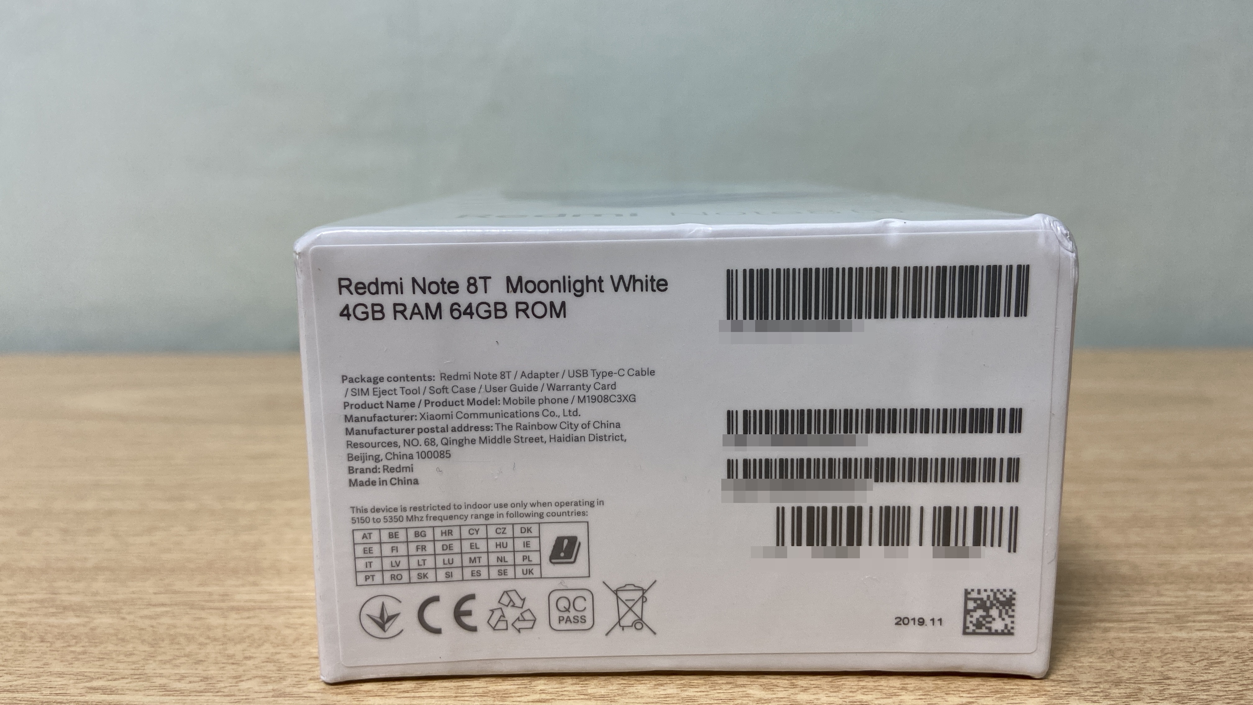 색상은 블루, 화이트, 그레이 세가지 색상이 있습니다. 오늘 개봉해볼 제품은 문라이트 화이트 색상에 4GB RAM + 64GB ROM 제품입니다. 홍미노트8T가 한국에 정식 발매 되었는데, 이 제품은 해외제품입니다. 한국 정식 발매 버전과 차이는 한국에서 AS가 되는지 여부말고는 차이가 없습니다.
