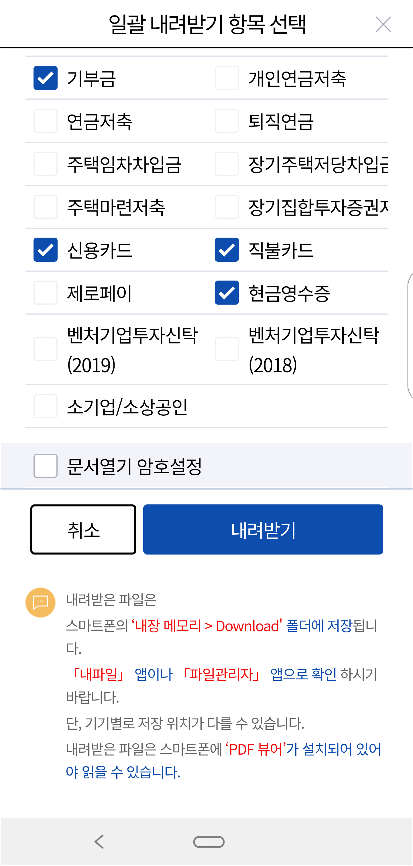 저는 PC에서도 연말정산 간소화 서비스를 이용했는데, 어플에서 특별히 다른 부분은 없습니다. 그냥 PC에 있던 것을 모바일로 편리하게 이용할 수 있습니다.