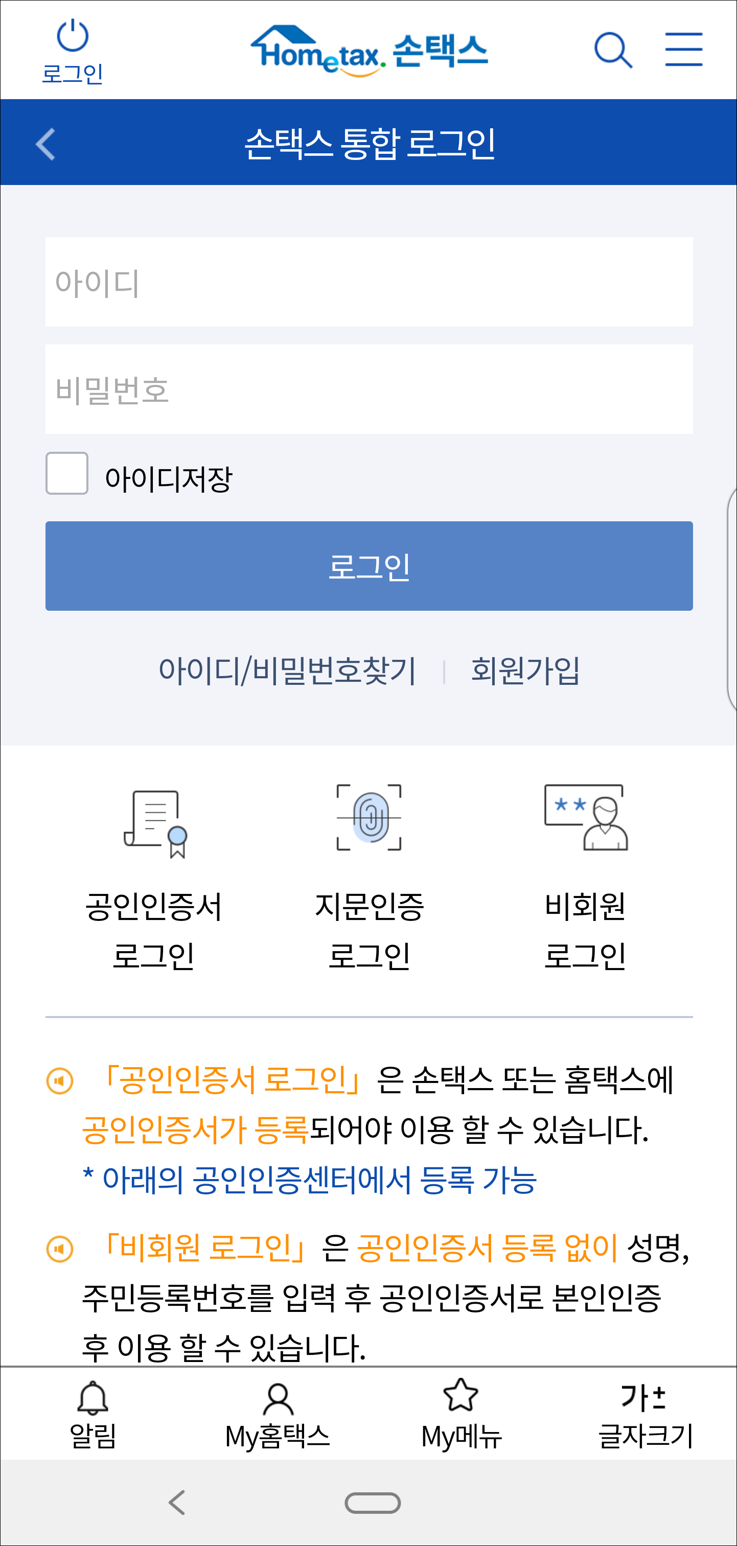 로그인을 하고 공인인증센터에서 공인인증서를 등록해야 공인인증서 로그인이 가능합니다. 공인인증서가 있다고 바로 사용이 안되고 등록해주는 과정을 거쳐야 합니다. 과정이 조금은 복잡하긴 하네요.