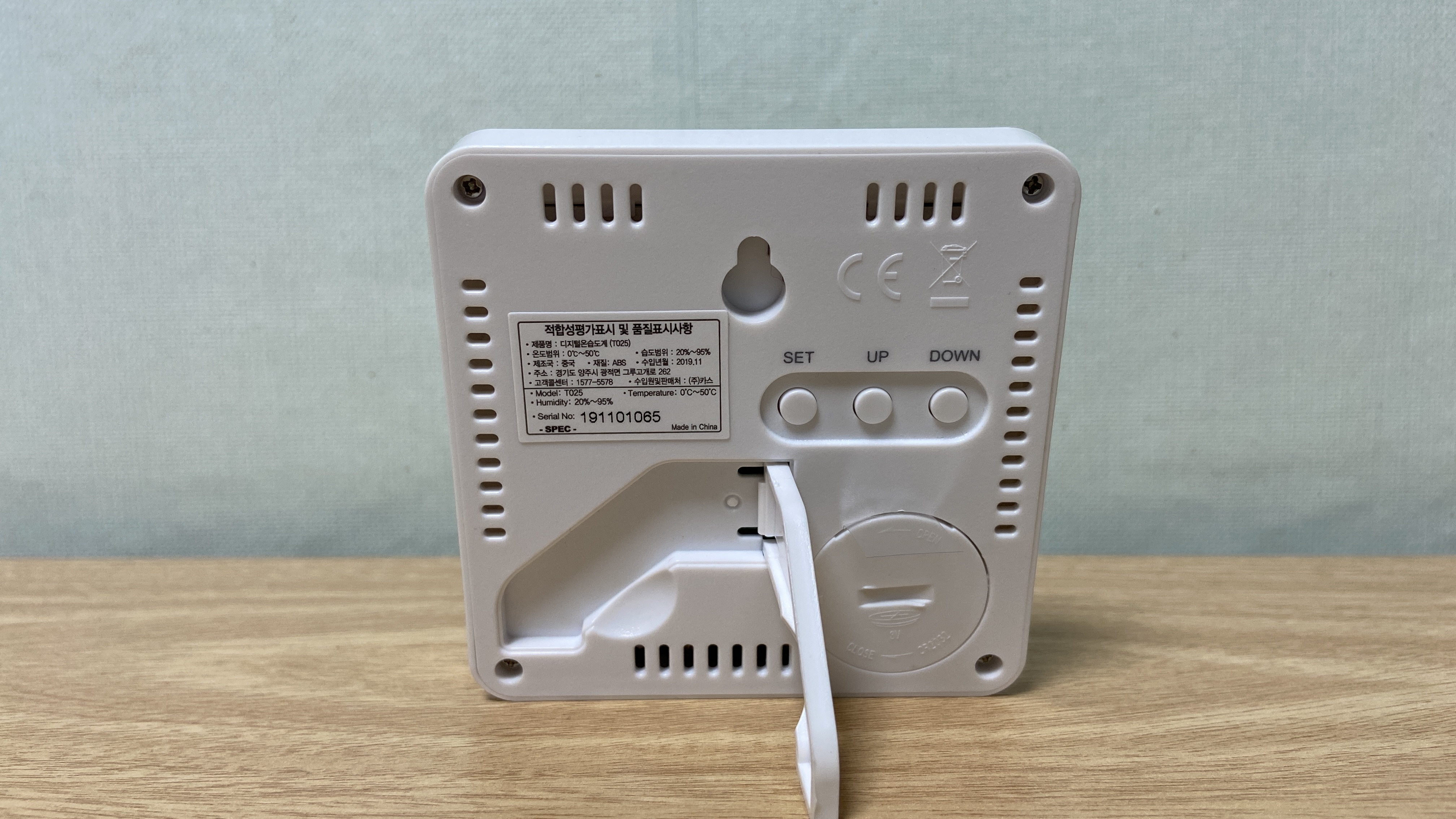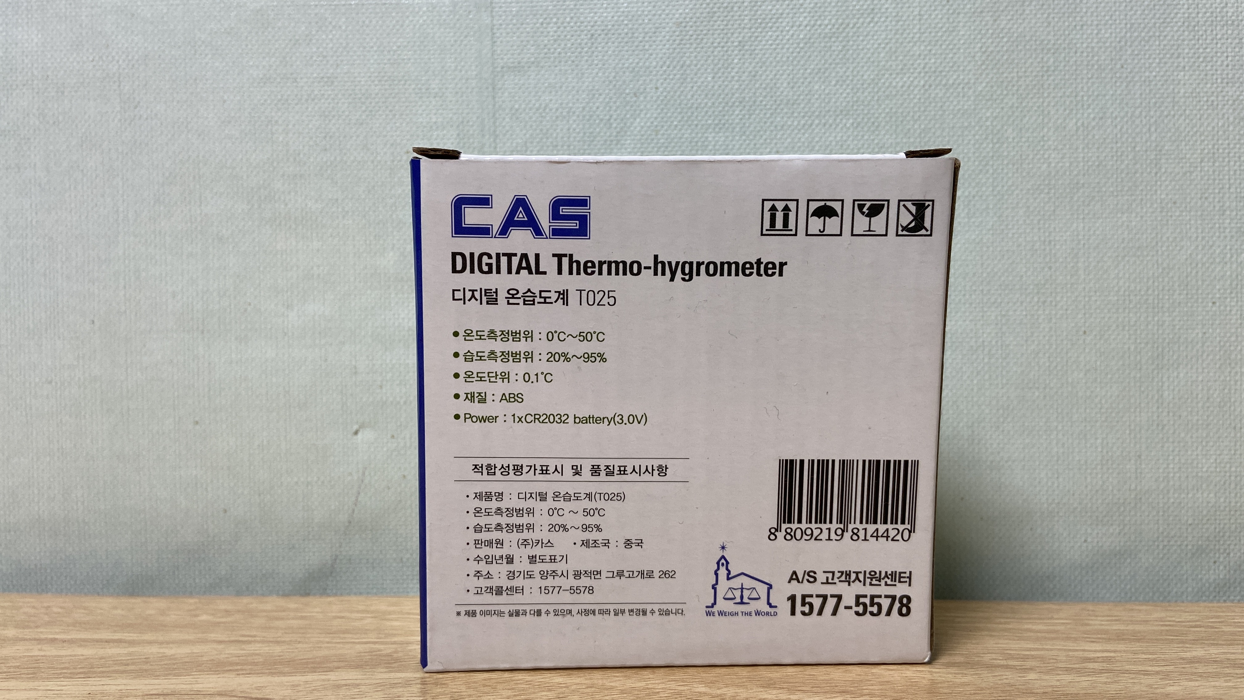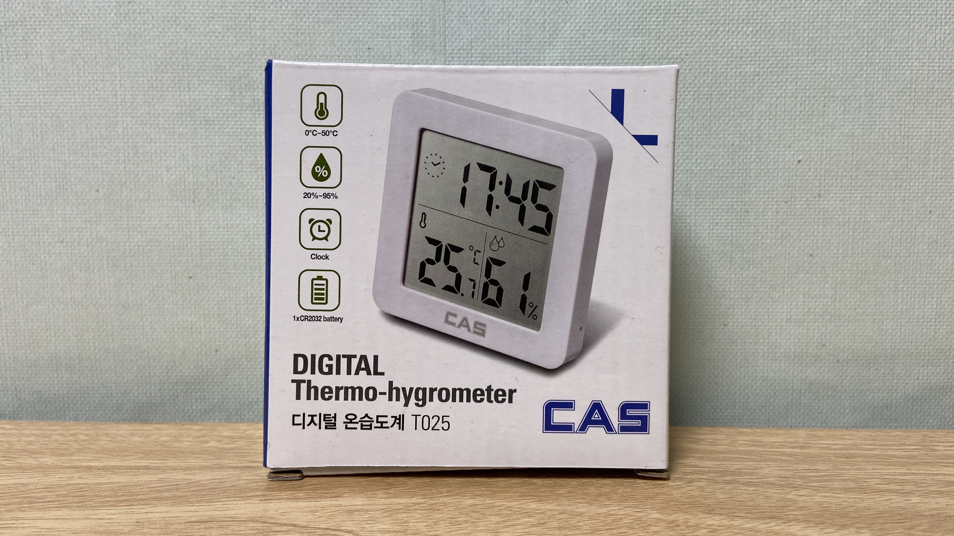 아주 작은 사이즈 박스가 도착했습니다. 택배로 보내질때는 외관에 박스가 하나 더 있습니다. 카스 디지털 온습도계는 온도와 습도는 물론 알람기능도 있습니다. 모델명은 T025이며, 측정범위는 온도는 0-50도 / 습도는 20-90%까지 측정이 가능합니다.