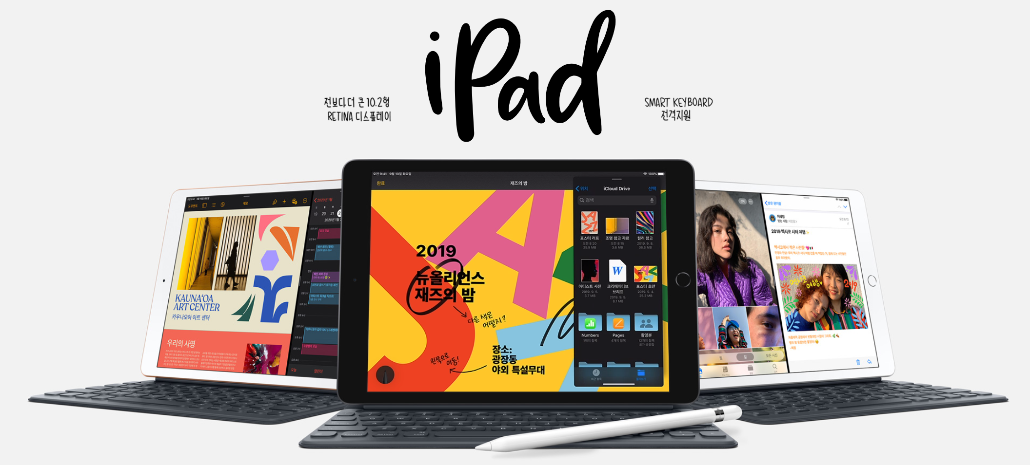애플에서 아이패드 7세대가 출시되었습니다. 새로운 세대이니만큼 6세대와 비교를 하면 달라진 부분이 있습니다. 일단 크기가 9.7인치에서 10.2인치로 0.5인치 커졌습니다. RAM의 용량이 2GB에서 3GB로 올라 갔습니다. 애플에서 RAM의 용량을 잘 안올려 주는데 의외입니다. 기존에는 애플펜슬 1세대만 사용이 가능했는데, 스마트 키보드를 사용할 수 있게 바뀌었습니다. 그리고 가격이 430,000원에서 449,000원으로 올랐습니다.