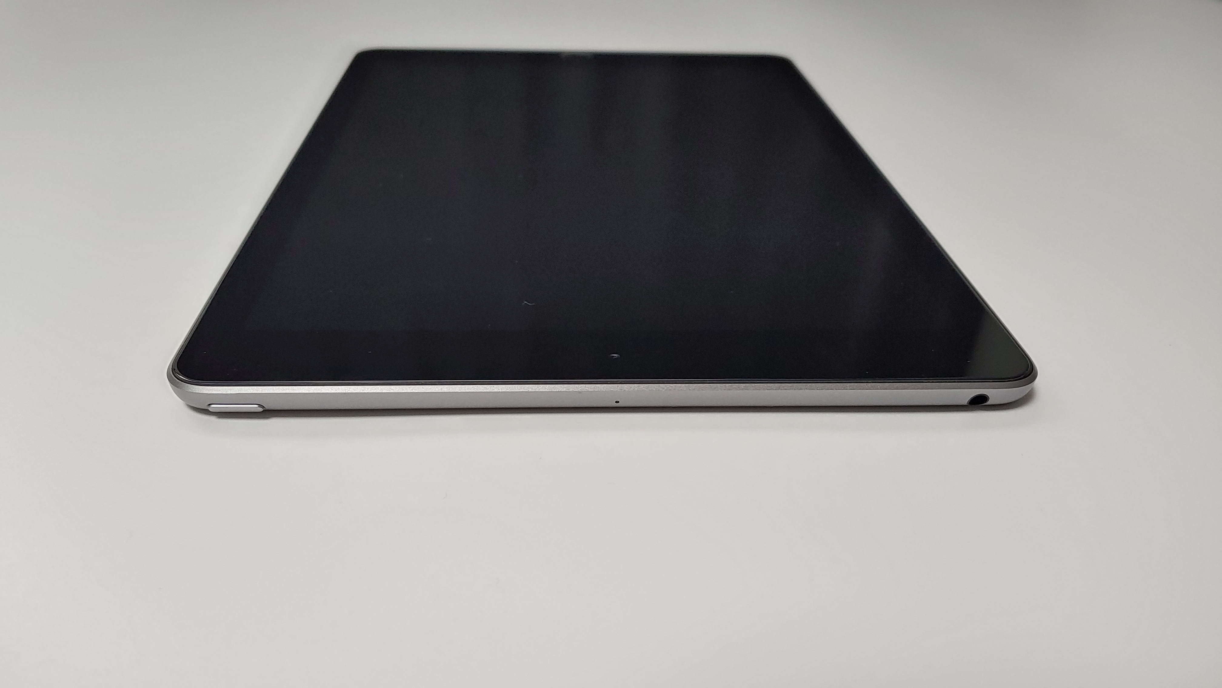 하단에 스피커와 라이트닝 포트가 있습니다. 그리고 상단에는 전원버튼과 3.5mm 이어폰 잭도 있습니다. 스피커가 스테레오긴 한데, 하단에만 있어 영상을 볼 때 소리가 아주 좋지는 않습니다. 다만 쿼드 스피커 태블릿을 경험하지 않았던 분들은 충분히 괜찮은 스피커입니다.