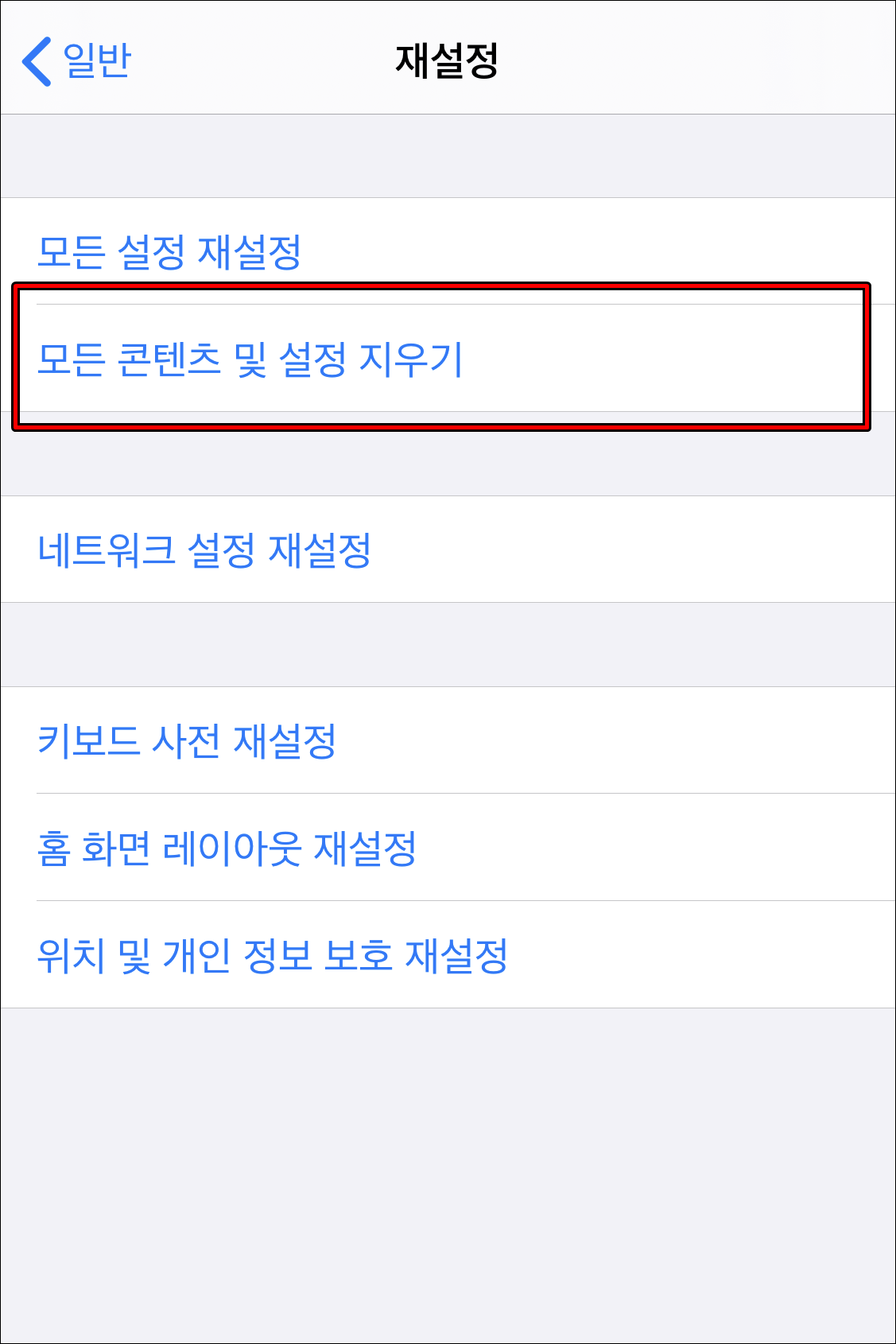 설정에 일반에 들어가면 하단에 재설정 메뉴가 있습니다. 이곳에서 모든 콘텐츠 및 설정 지우기를 클릭하면 아이폰이 초기화 됩니다.