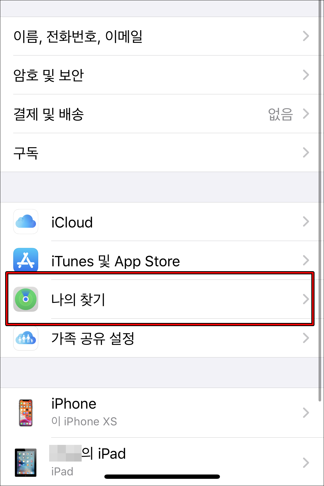 아이폰을 구입해 사용하면 분실을 대비해서 나의 아이폰 찾기를 활성화 해 놓습니다. 그런데 초기화를 위해서는 이부분을 비활성화 해야 합니다. 가장 먼저 설정에 들어가 나의 계정을 클릭해 주세요. 그리고 나의 찾기에서 나의 아이폰 찾기를 비활성화 해주세요. 나의 아이폰 찾기를 비활성화 하지 않으면 초기화를 할 수 없습니다.