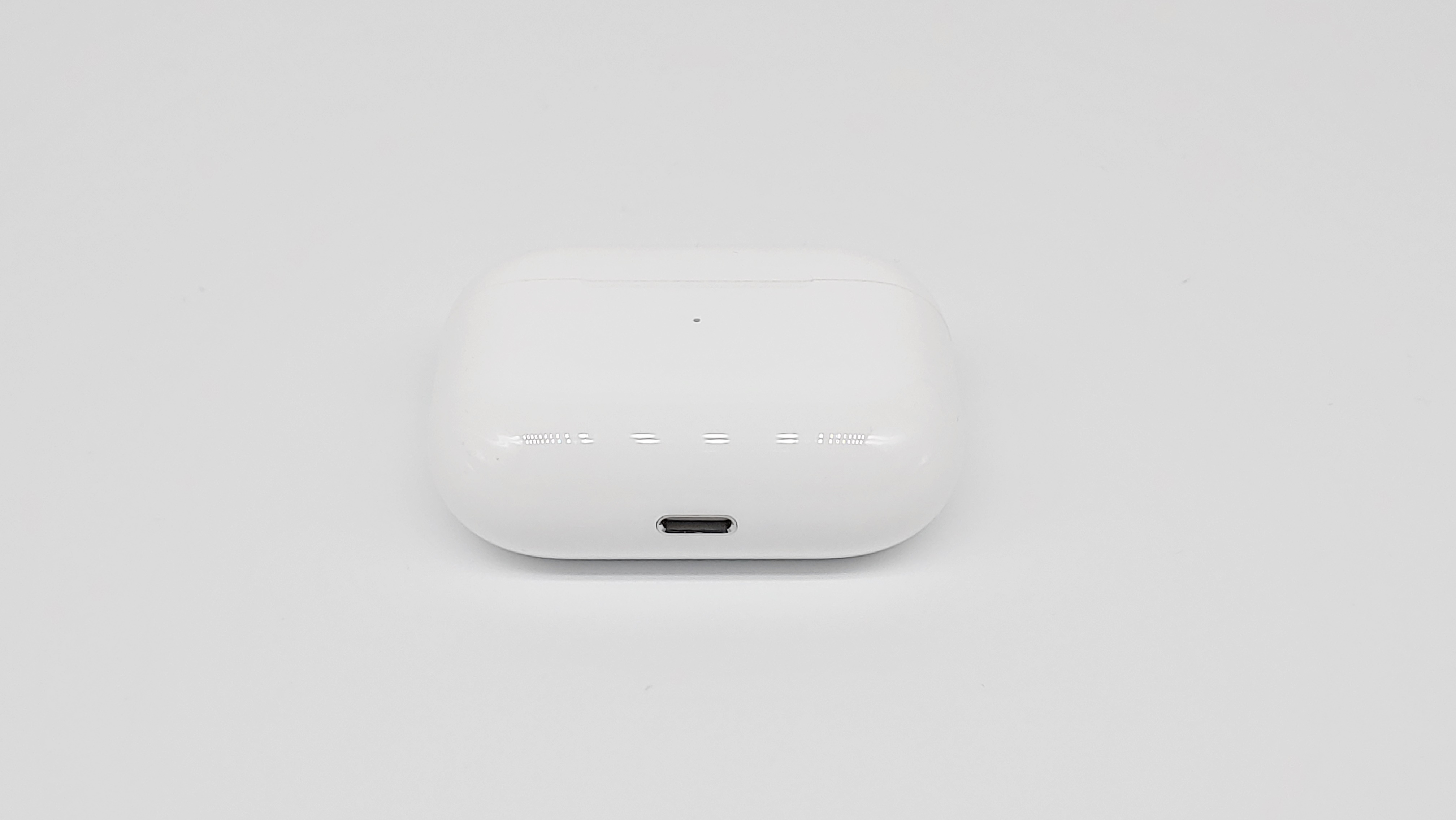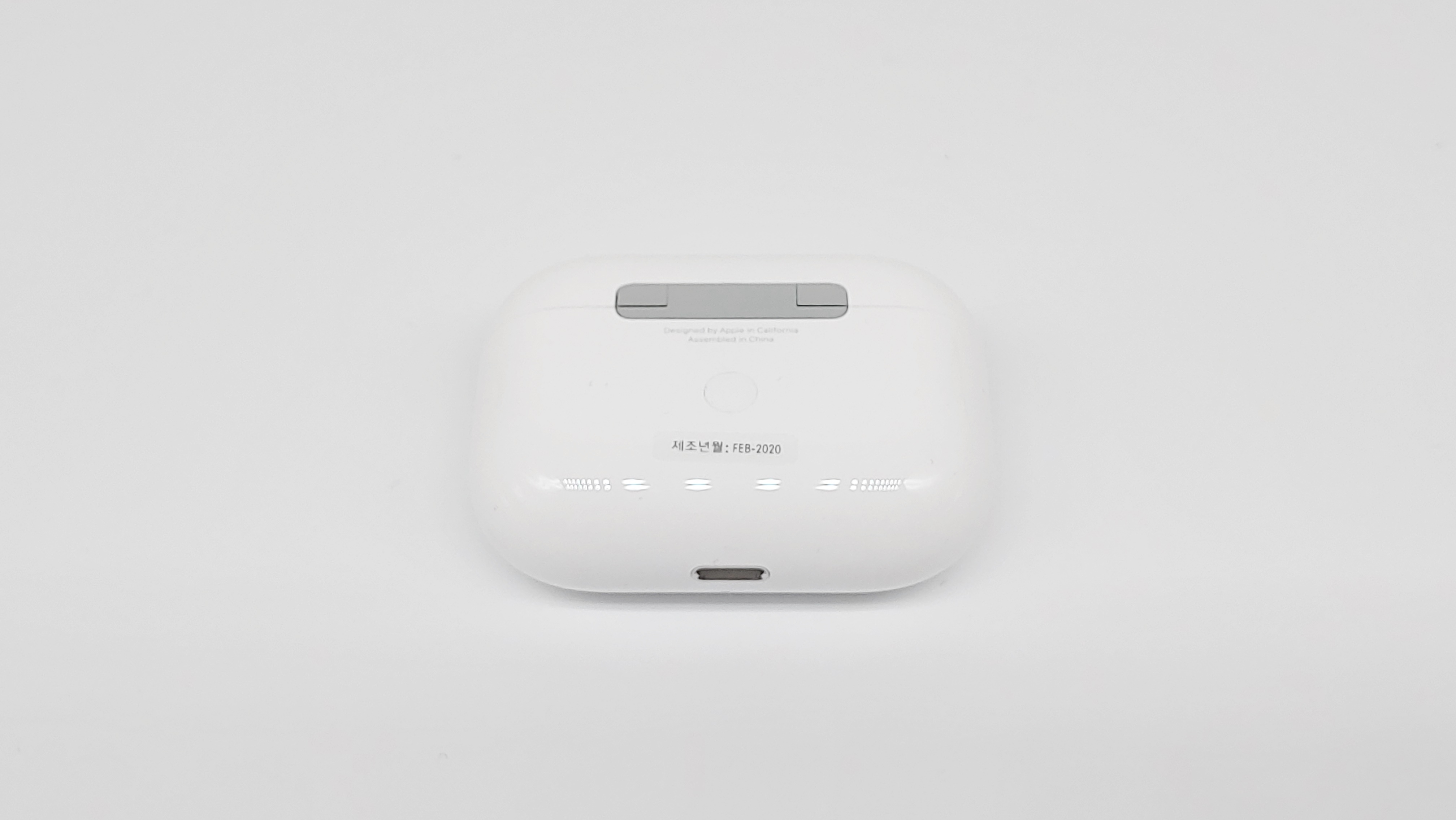 충전 케이스가 옆으로 커진 다지인입니다. 이것은 에어팟 프로 이어폰의 헤드가 커진것과 관련이 있습니다. 하단에는 라이트닝 충전 포트가 있습니다. 그리고 뒤쪽에는 블루투스 연결을 끊을 때 사용하는 버튼이 있습니다.