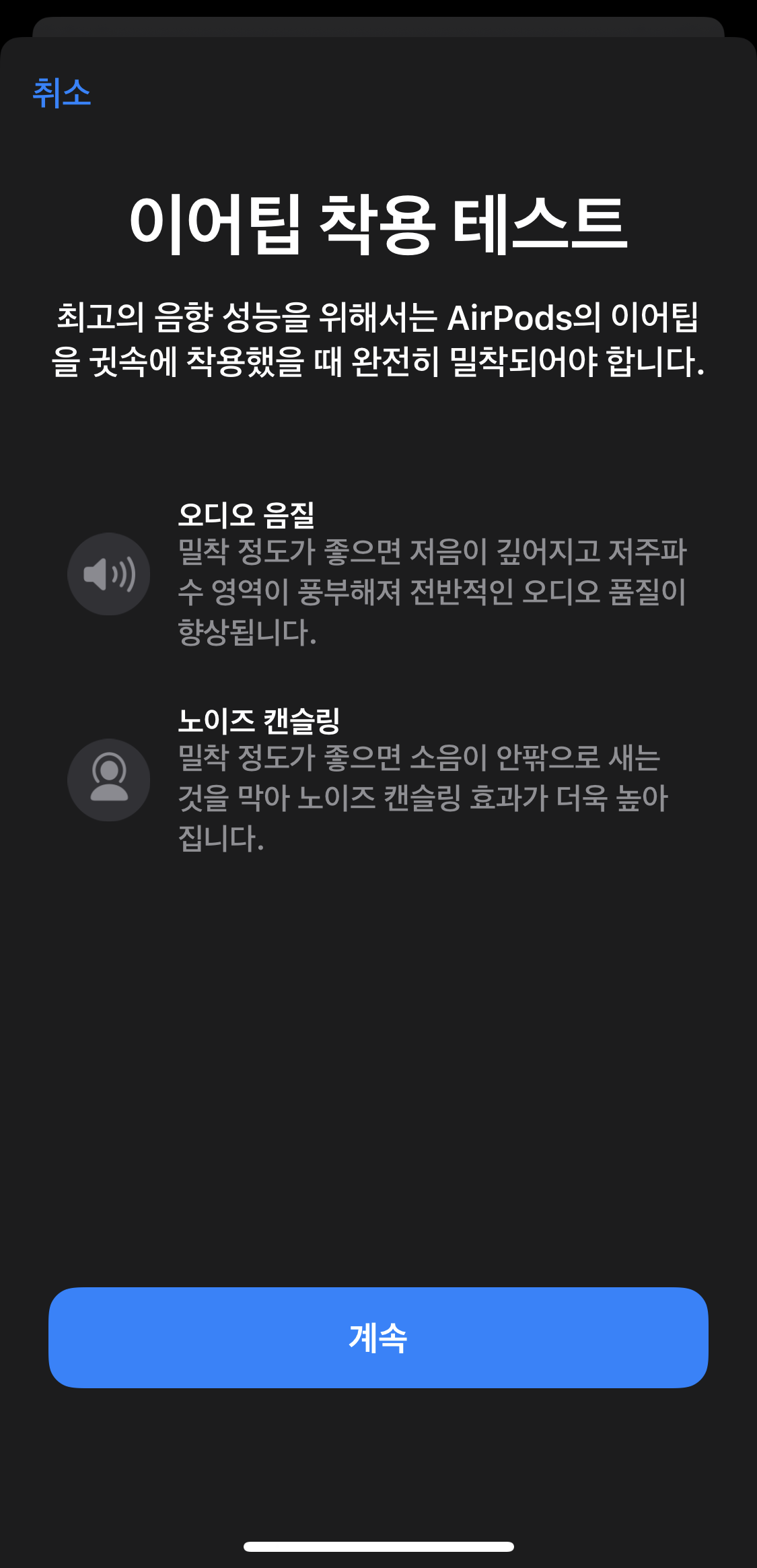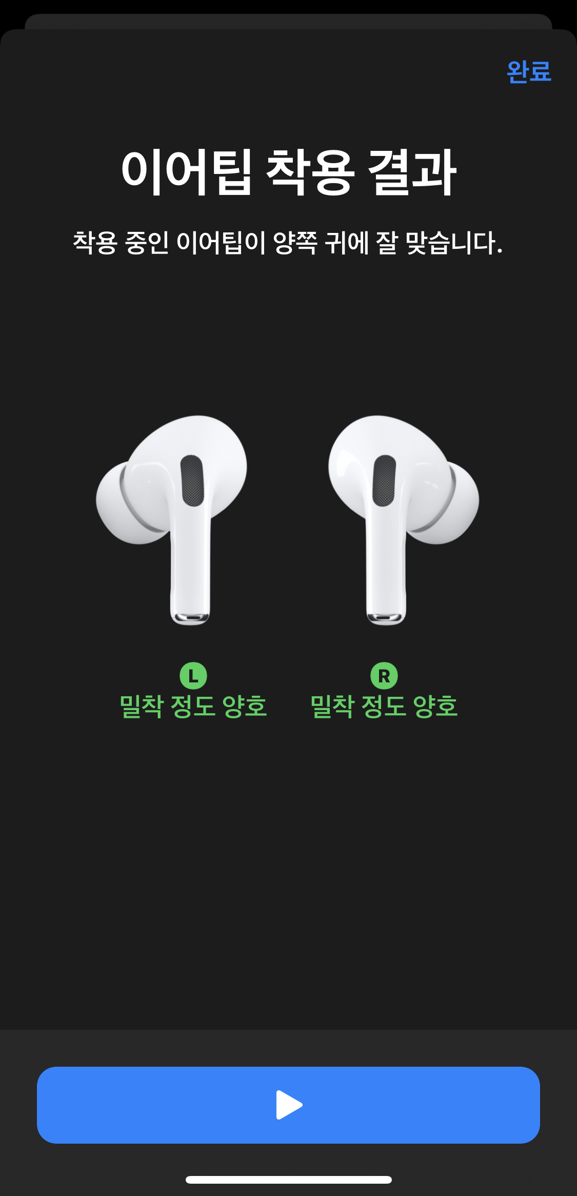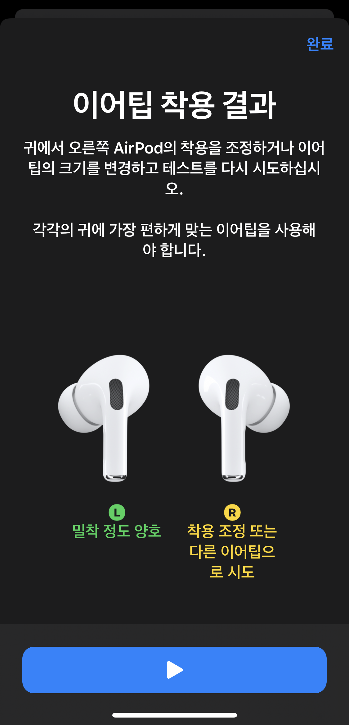 이어팁 착용 테스트도 할 수 있습니다. 귀에 잘 착용이 되어야 음악을 듣기도 좋으면서, 노이즈 캔슬링 효과를 극대화 할 수 있습니다.