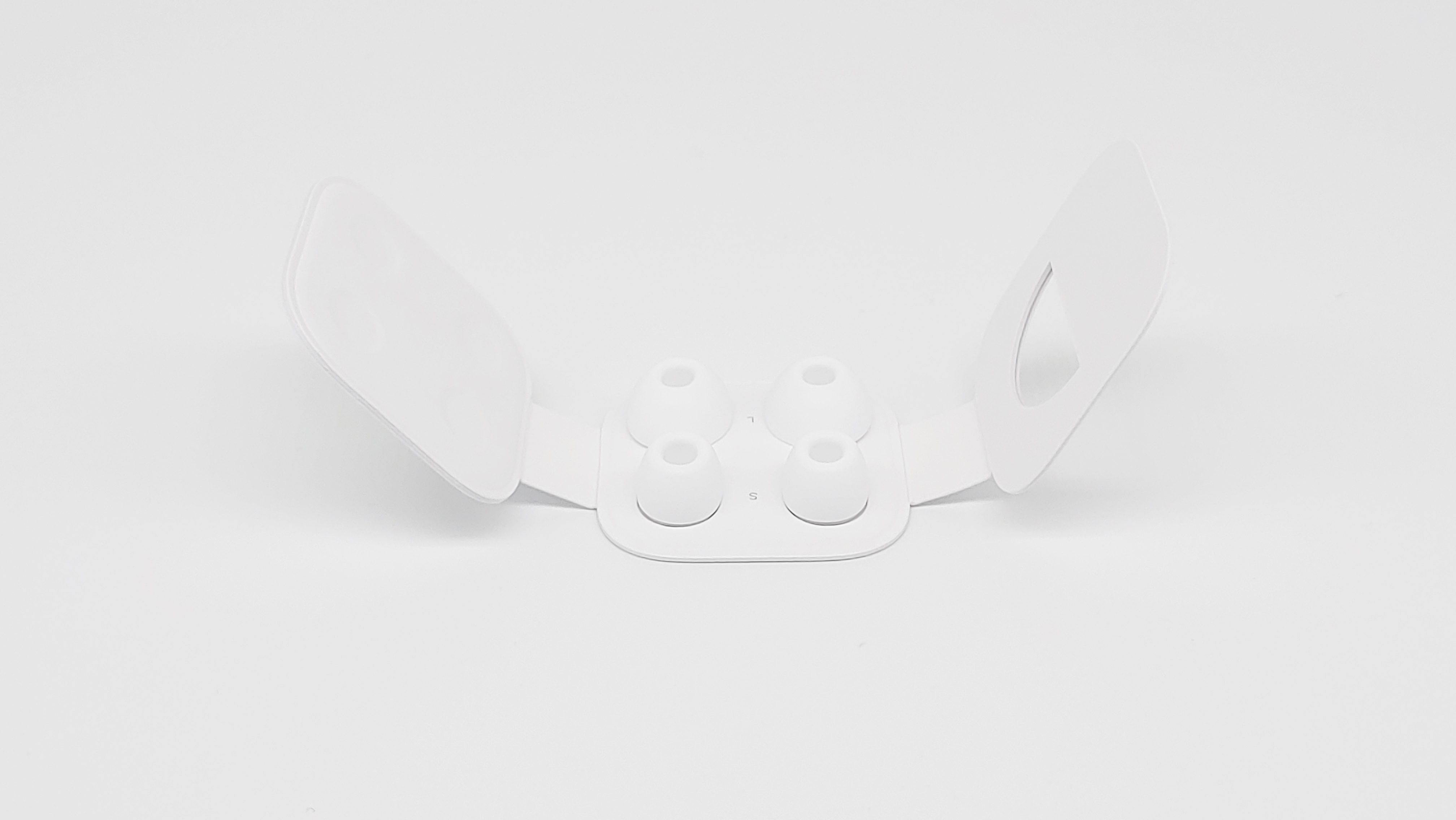 애플답지 않게 여분의 팁을 넣어 주었습니다. 사실 여분의 팁이라기 보다는 팁이 사이즈별로 들어 있는 겁니다. 여기는 L사이즈와 S사이즈가 있고, M사이즈는 이어폰에 장착이 되어 있습니다.