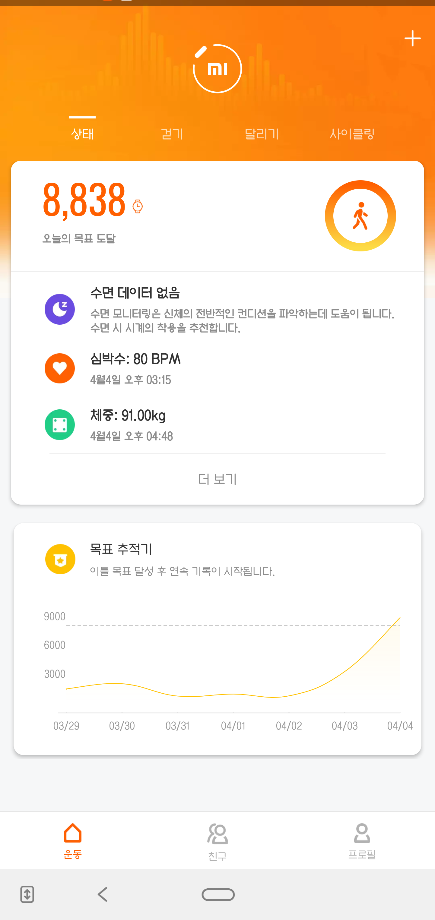 Mi Fit 앱 홈화면에서 체중을 누르면 나의 체중은 물론 인바디 데이터를 확인할 수 있습니다. 데이터를 보니 운동을 안한 티가 정말 많이 나는데 몸 상태가 안 좋네요.
