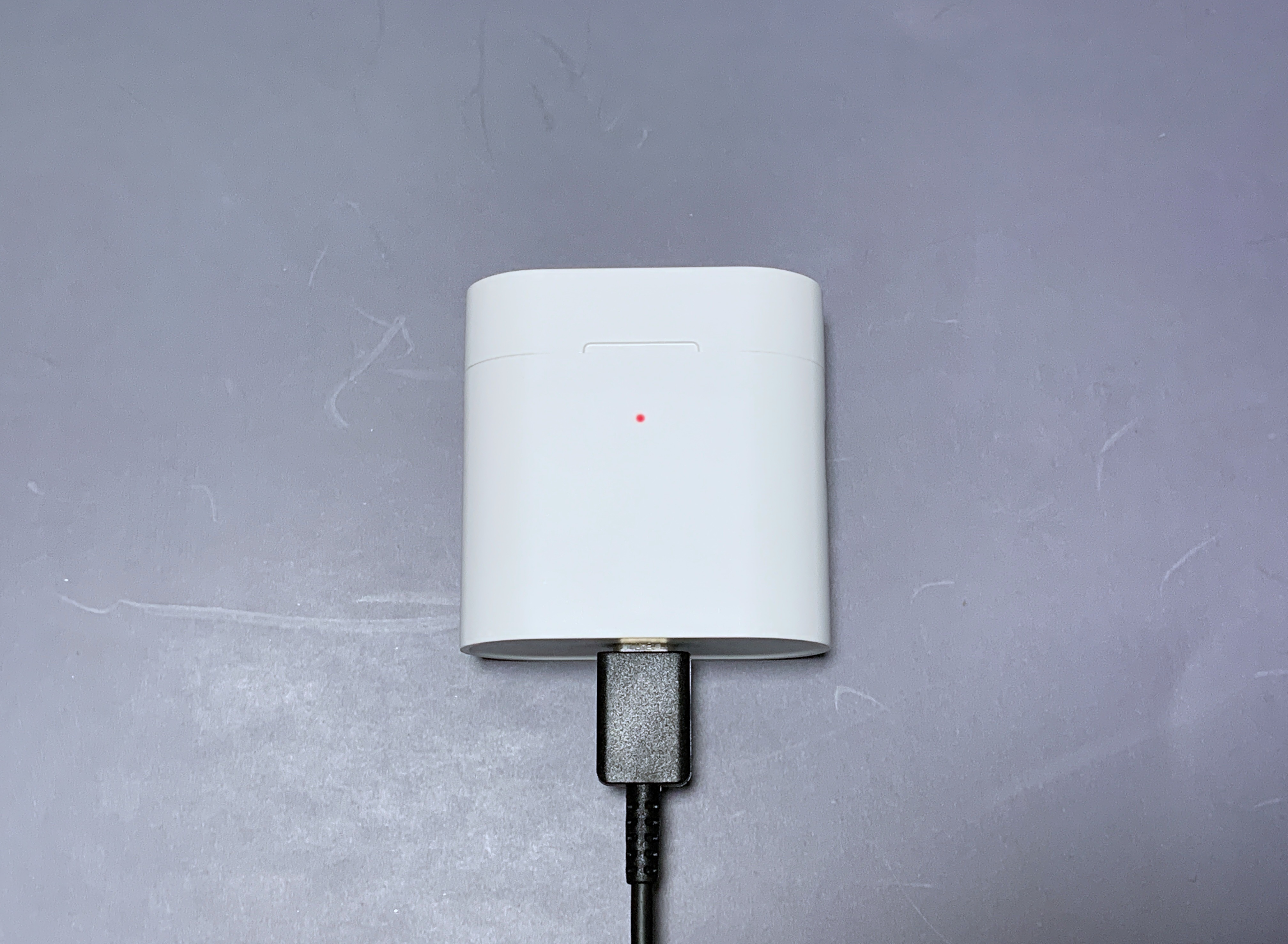 이어폰과 케이스는 무광에 색상은 흰색입니다. 이어폰 몸통 부분이 두껍게 디자인이 되어 조금은 투박한 느낌을 줍니다. 케이스 정면에는 LED가 있으며 오른쪽 측면에는 버튼이 있습니다. 다른 스마트 기기와 패어링을 할 때 필요한 버튼입니다. 버튼을 길게 누르면 페어링이 초기화 되어 다른 기기와 연결을 할 수 있습니다.