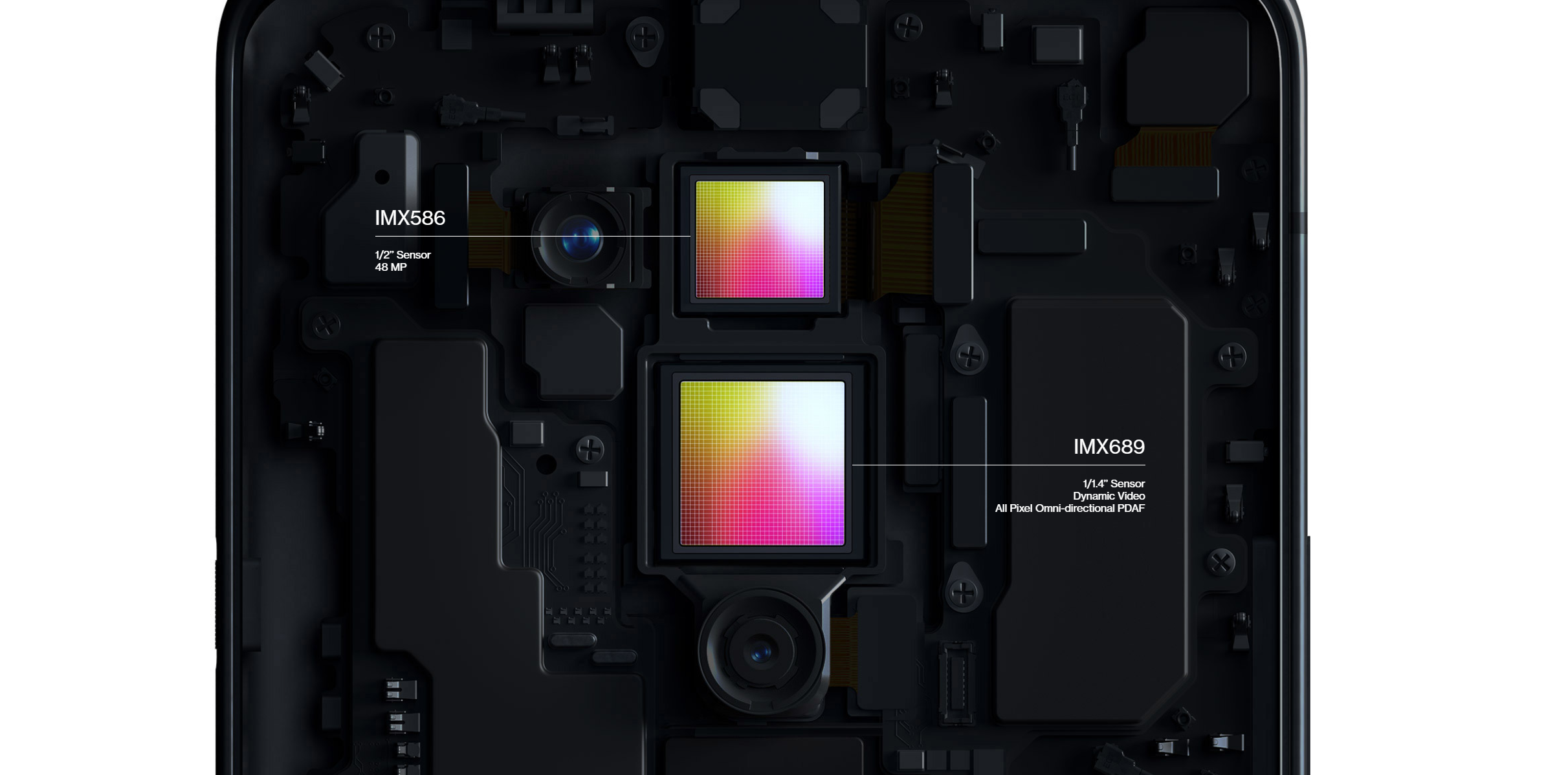 프로 모델을 기준으로 메인 카메라의 센서는 소니 IMX689이고, 망원 카메라는 소니 IMX586입니다. 메인 카메라는 All Pixel / 다이내믹 비디오, 1/1.4인치 센서 크기입니다.