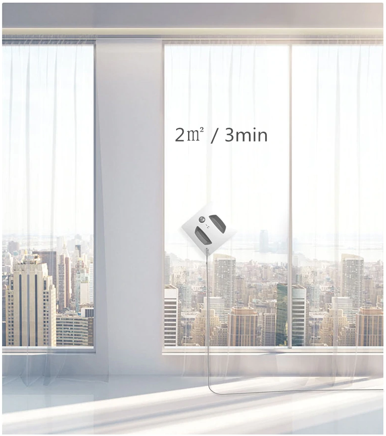 샤오미 유리창 청소기 hutt w55는 2500PA의 흡입력과 7kg의 수직으로 당기는 힘을 견딜 수 있도록 만들었습니다. 두께가 7.6cm로 얇습니다. 그래서 넓지 않은 공간도 청소를 할 수 있습니다.