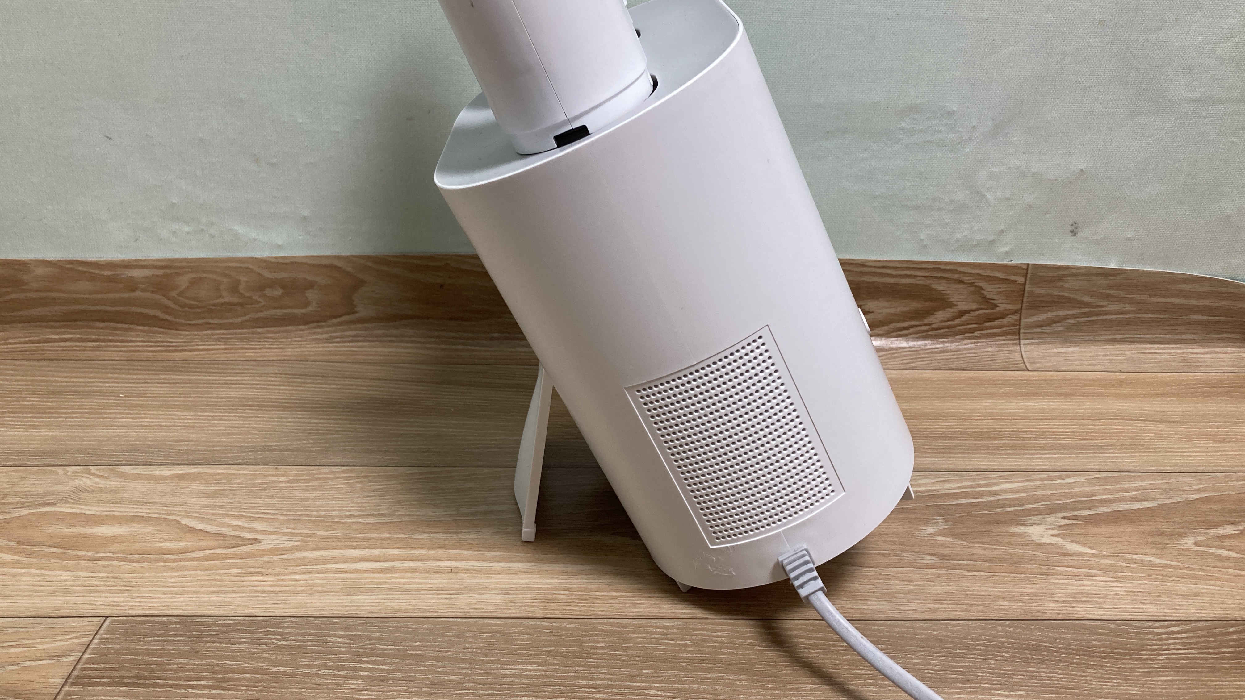 제품 뒤쪽에는 받침대가 있습니다. 받침대를 통해 제품을 세워놓고 사용이 가능합니다. 잘 세워지긴 하는데 각도가 애매해 살짝만 건드려도 넘어집니다. 이부분은 아쉬운 부분입니다.