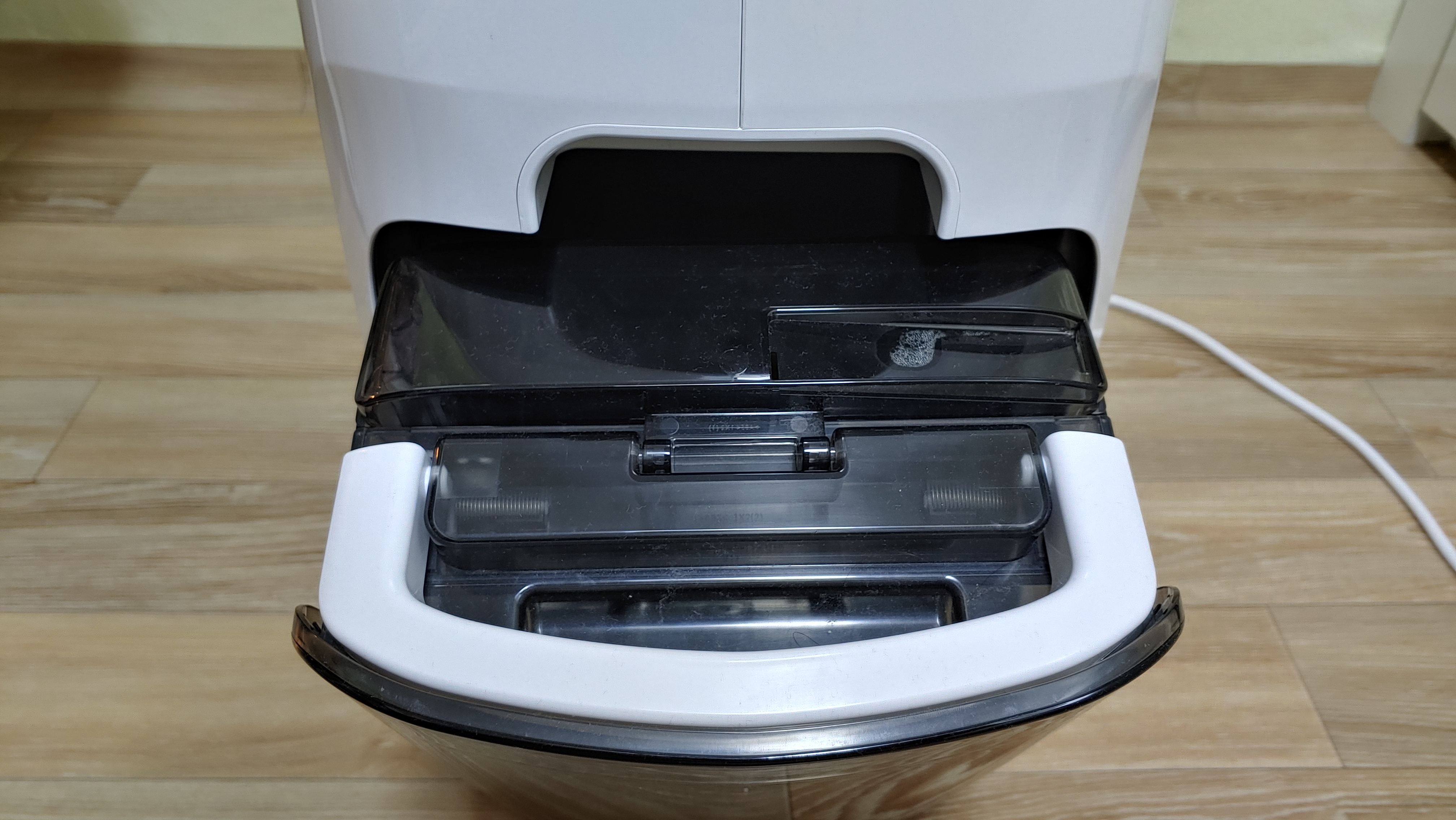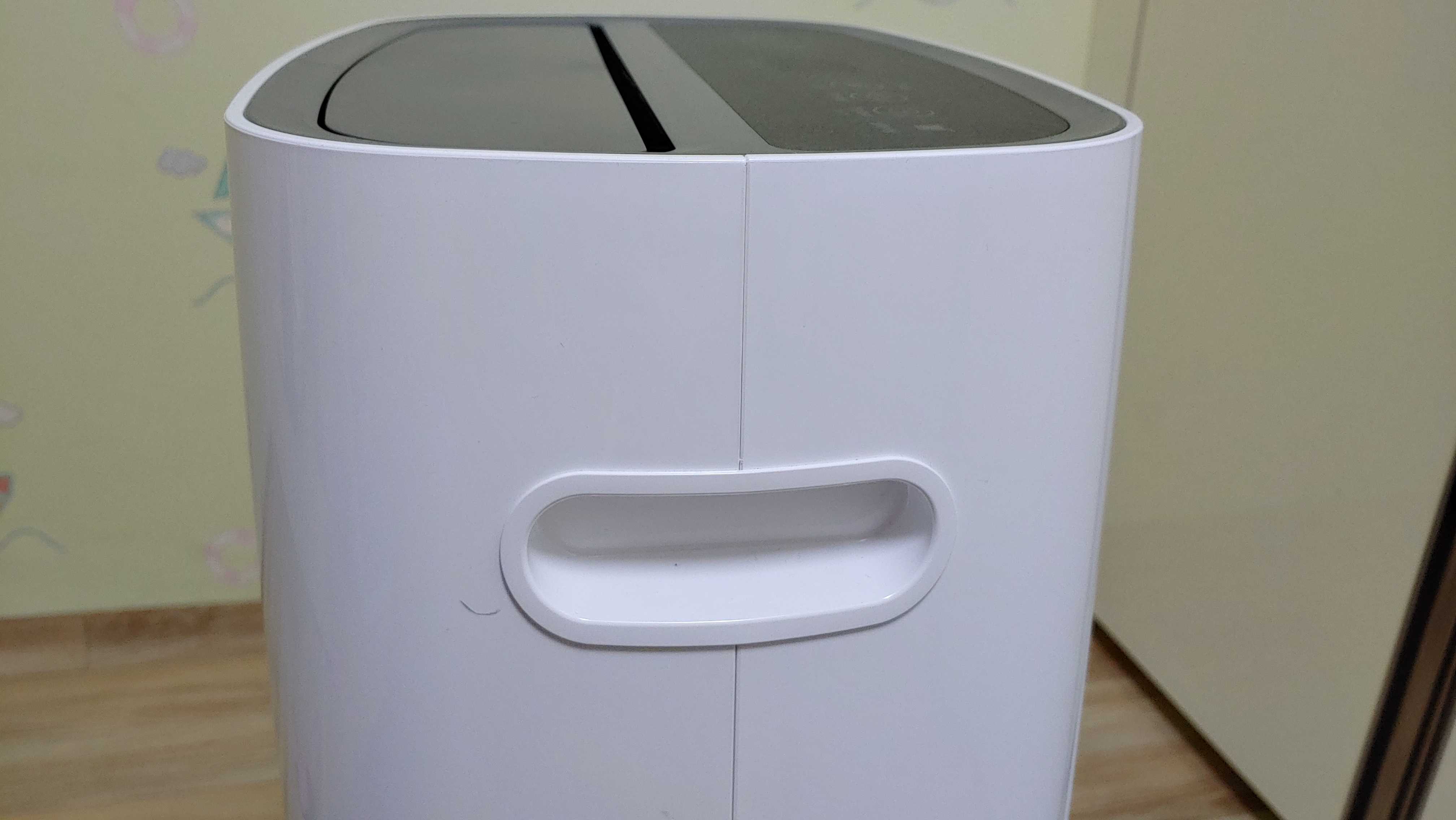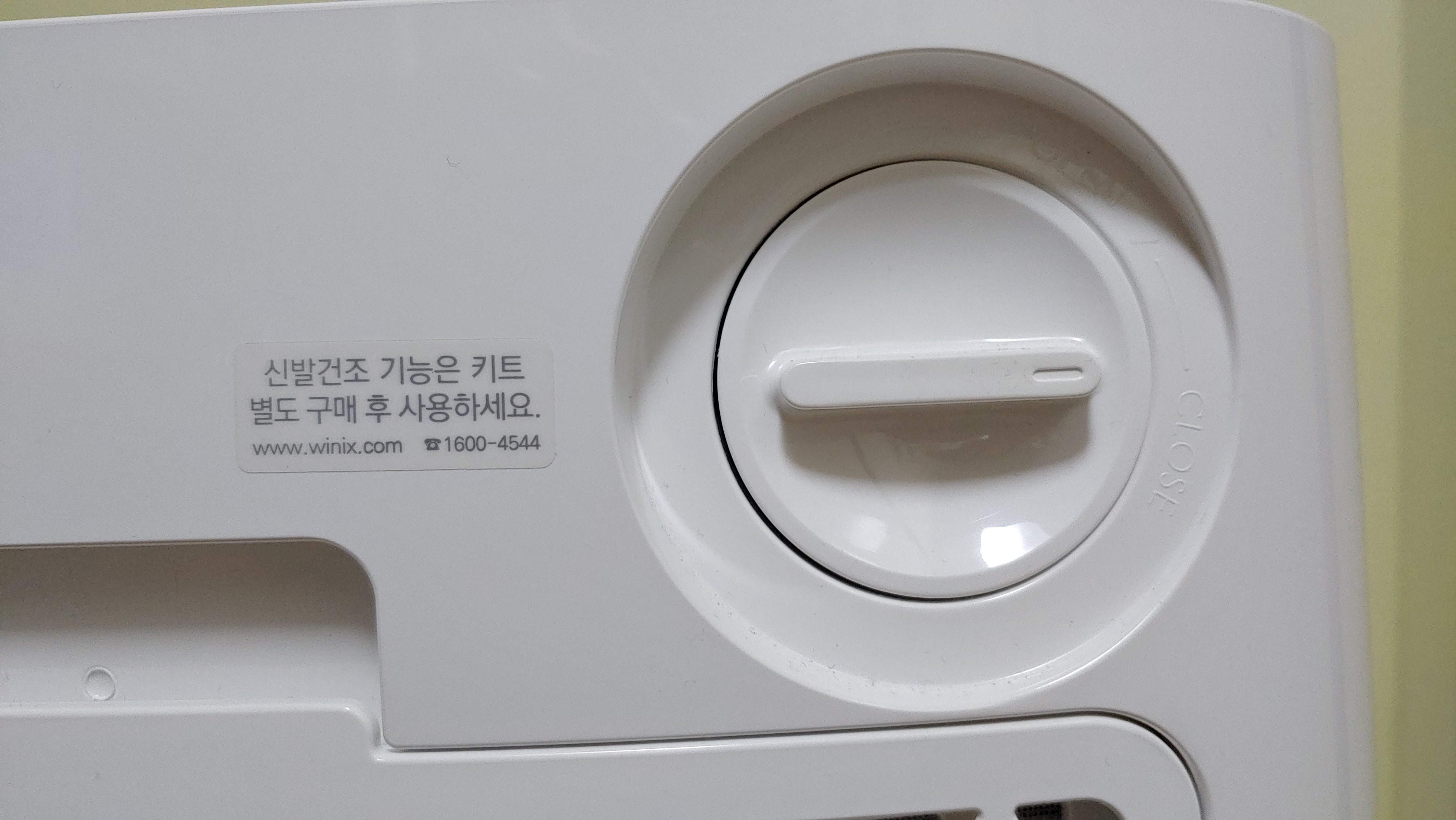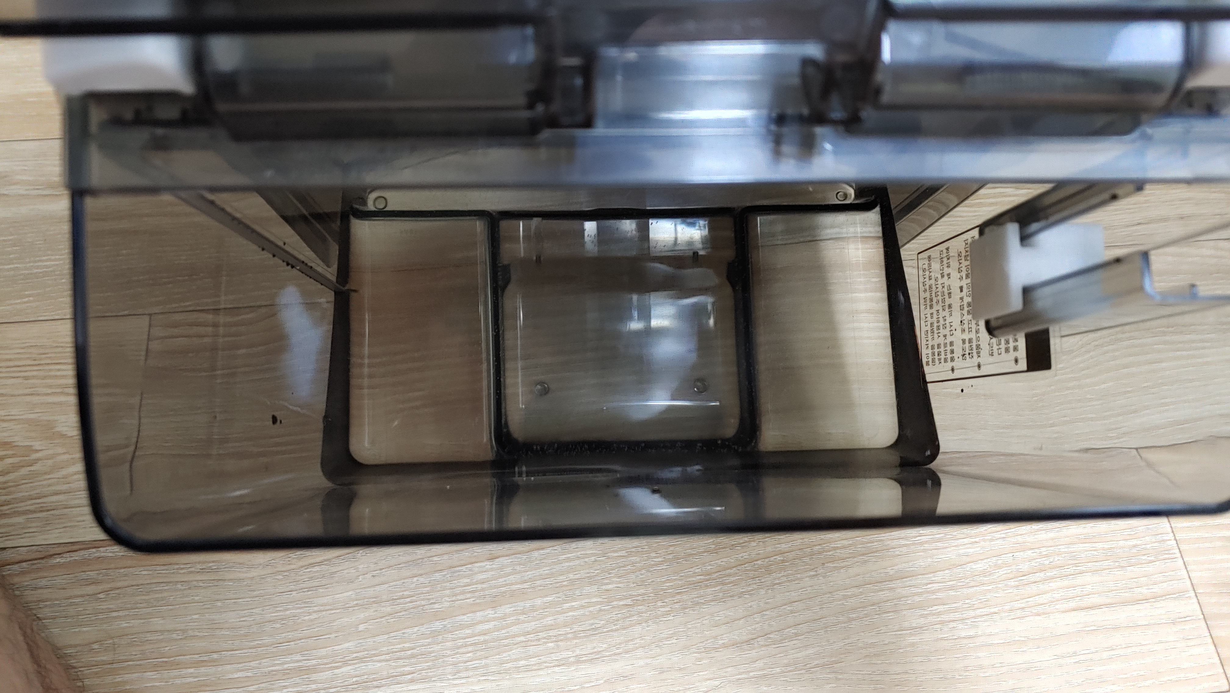 물통이 오른쪽 측면에 위치해 있습니다. 제습기를 사용하면 이곳에 물이 모이게 되며, 사용을 하고 물통만 비워주면 됩니다. 다만 제습기를 사용하고 바로 물통을 빼기 보다는, 10분 정도 여유를 두고 빼는 것이 좋습니다. 제습된 물이 바로 물통에 들어가는게 아니라 시간이 걸립니다. 물이 다른 곳에 흘러 나중에 닦아줘야 해서 두번 일을 하게 됩니다.