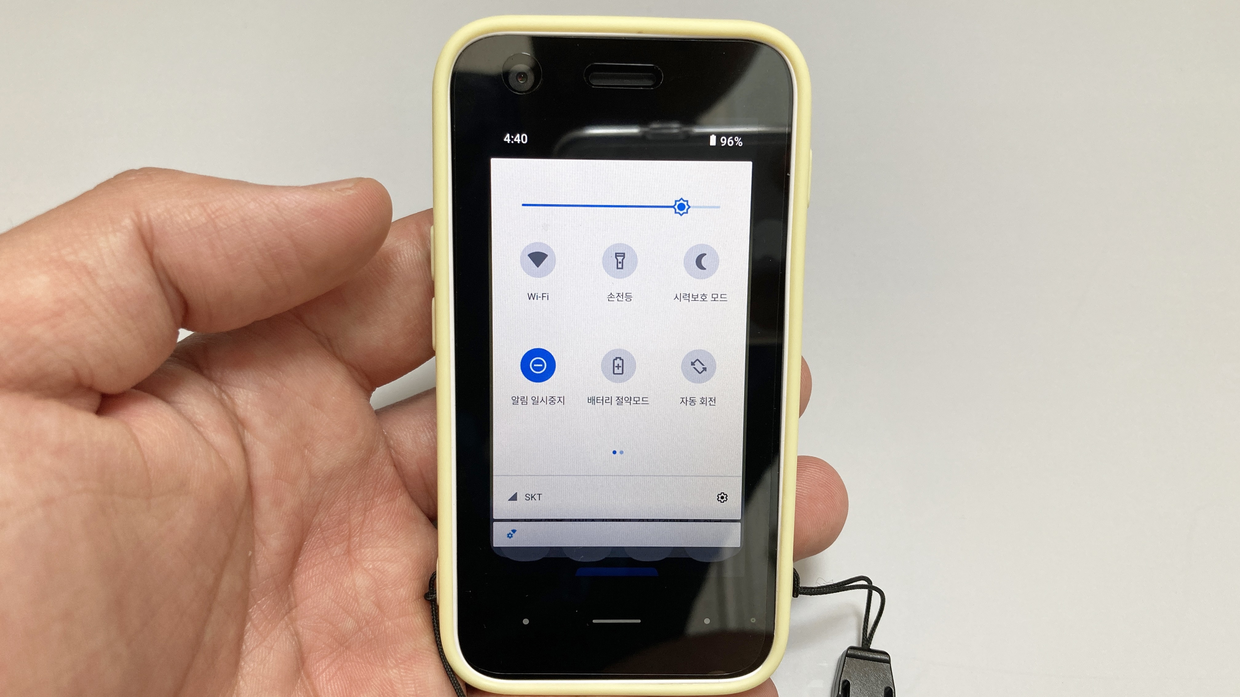 안드로이드 OS를 기본으로하며, 버전은 안드로이드 9입니다. 상단을 쓸어내리면 메뉴가 나오는 것이 동일하며, 거의 기본 기능만 있습니다.