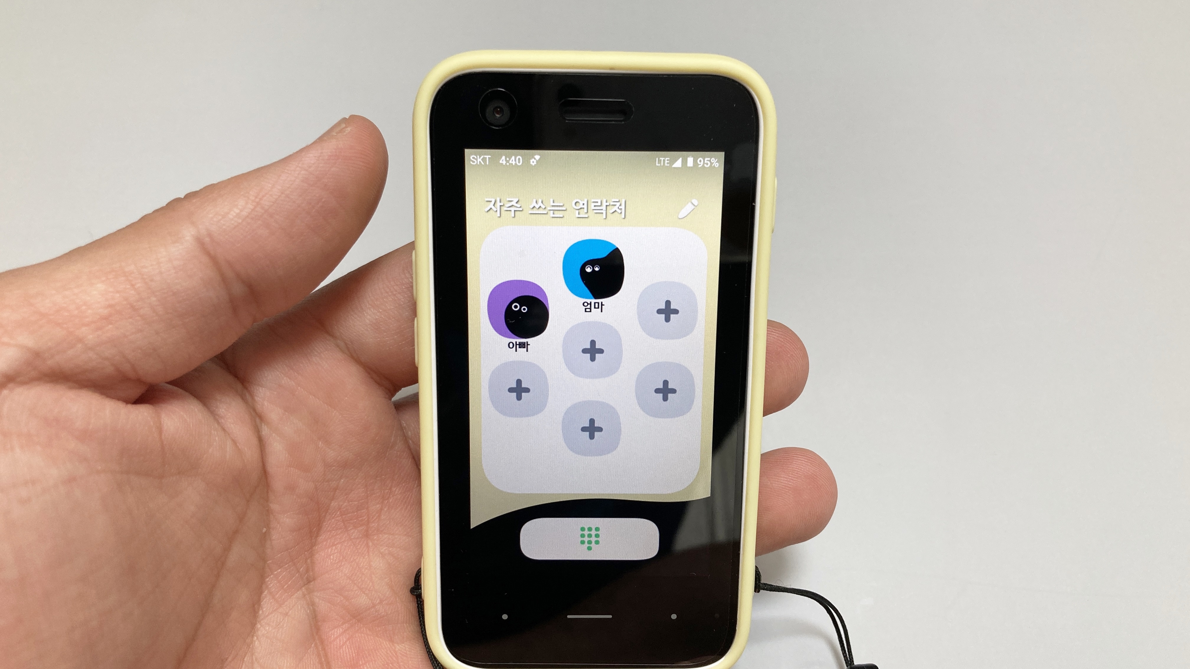 화면을 왼쪽으로 하면 자주 쓰는 연락처를 등록해 사용할 수 있습니다. 아직은 엄마 아빠만 있는데, 나중에는 자주쓰는 연락처에 학교 친구들로 채워 질거 같습니다.