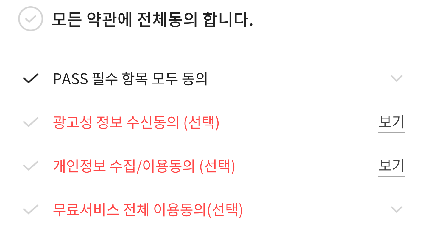 본인인증을 먼저 해야 합니다. 휴대폰번호, 이름, 생년월일을 넣어 주고 문자 인증을 받으면 됩니다. 참고로 약관 동의 화면이 나오는데 필수 항목만 동의해주면 됩니다. 빨간색 글씨로 나오는 선택동의를 안해도 됩니다. (선택 동의를 하게 되면 광고문자 등이 올 수 있어 귀찮아 질 수 있습니다.)