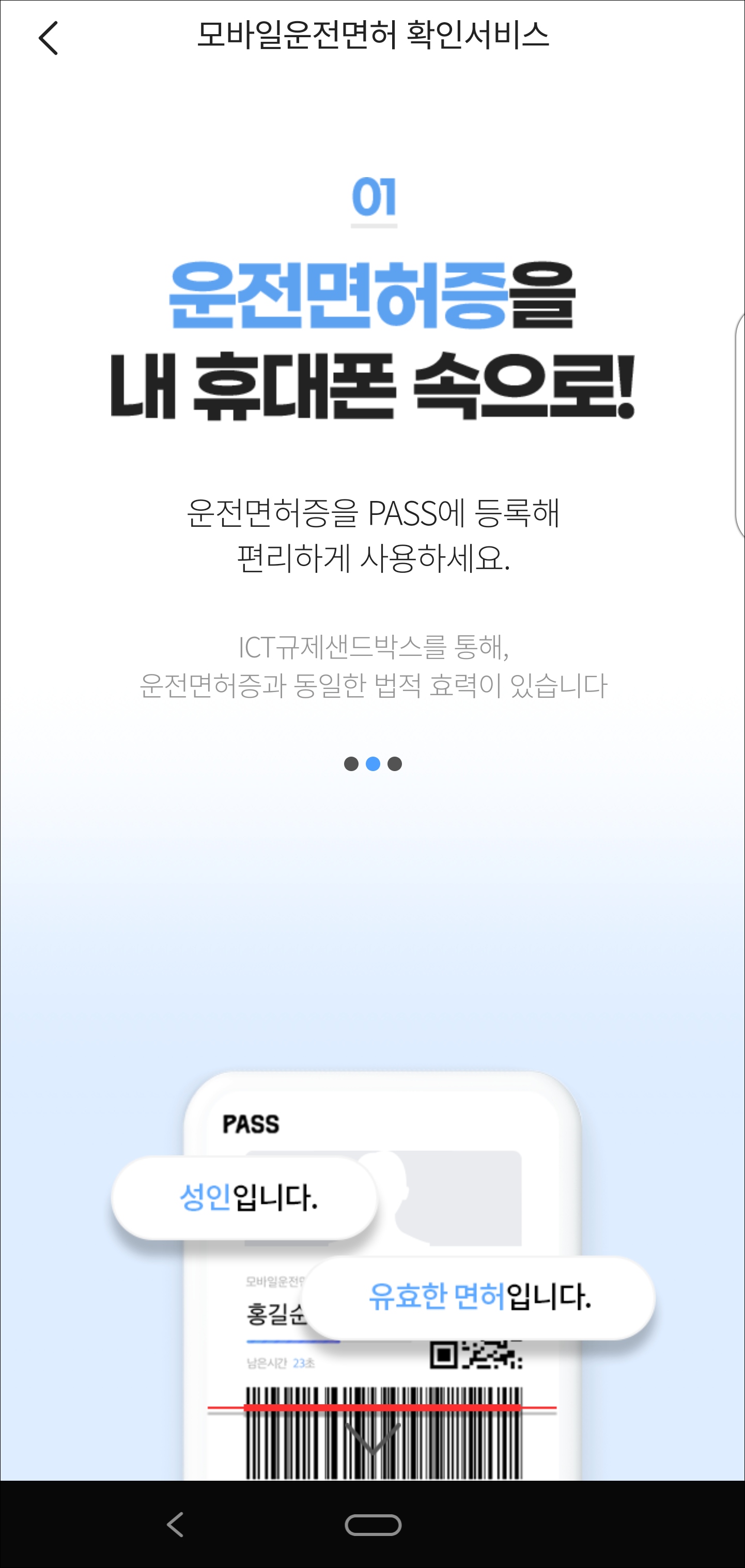 ICT규제샌드박스를 통해 운전면허증과 동일한 법적 효력이 있다고 안내가 되어 있습니다. 하지만 아직은 출시된지 얼마 되지 않아 모바일로 발급된 운전면허증을 다양한 곳에서 사용하기까지는 시간이 걸릴거 같습니다.