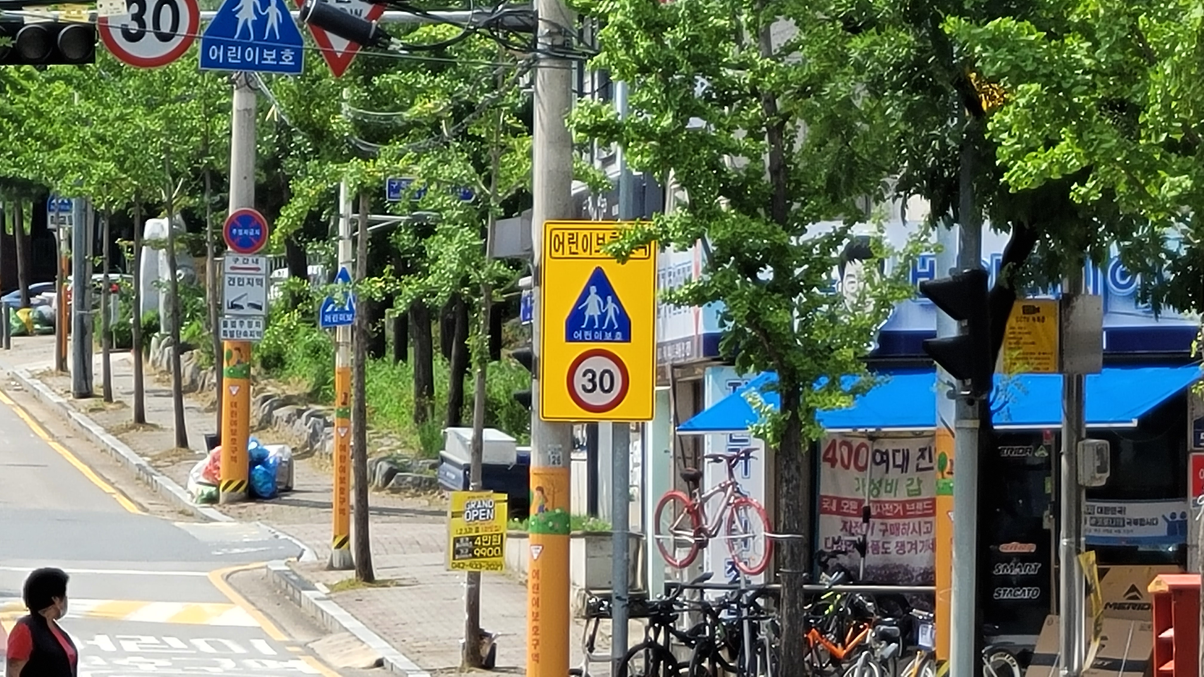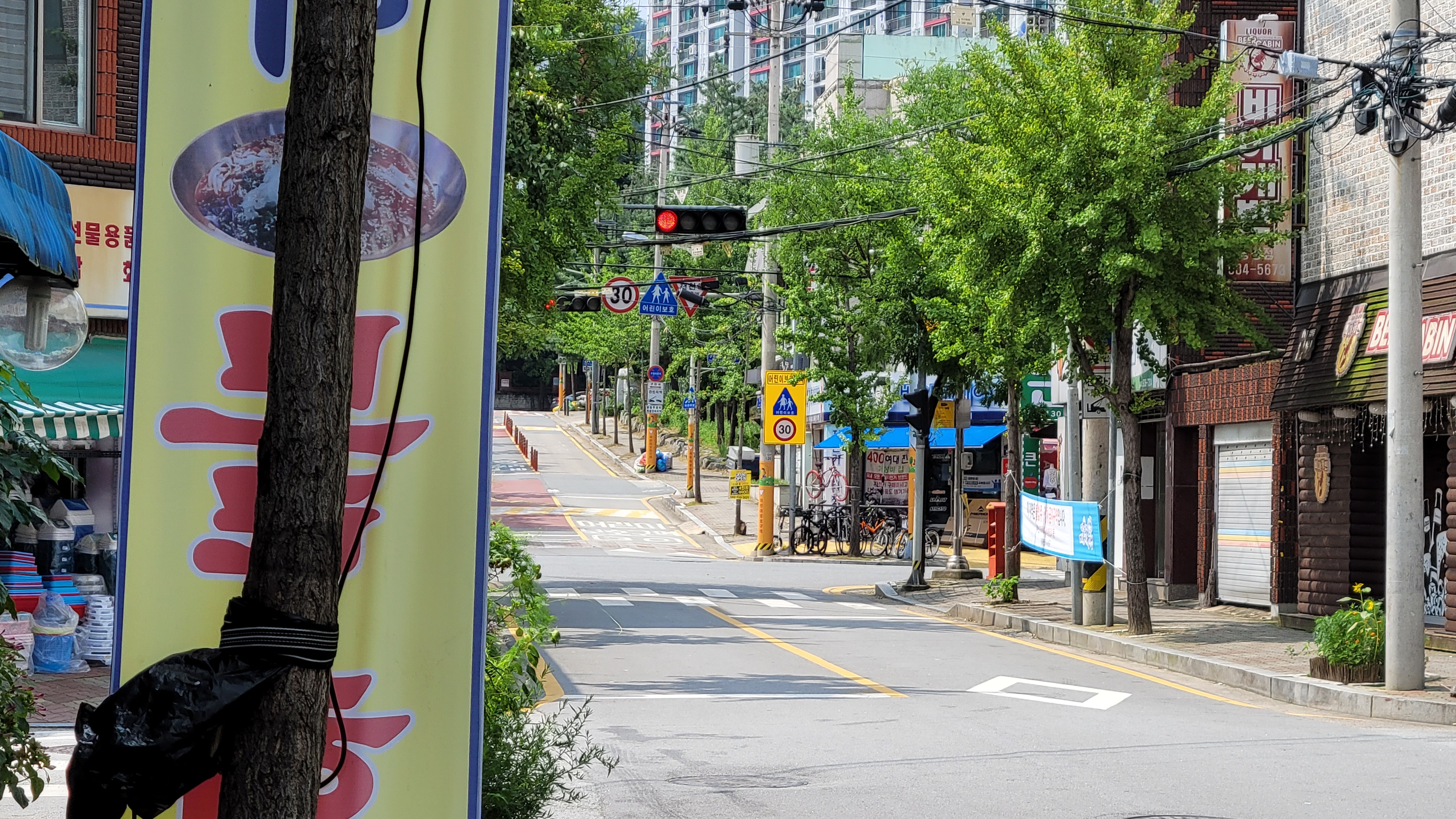 야간에 사진을 촬영하면 간판의 밝은 곳이 날아가 버리는 경우가 많습니다. 왼쪽이 일반 모드 / 오른쪽이 야간모드입니다. 식당 간판을 보면 왼쪽은 밝은 빛 때문에 상호가 거의 보이지 않는데, 오른쪽은 식당 상호가 잘 보입니다. 야간모드가 단순히 어두운 곳을 밝게만 만들어 주는 것이 아니라 너무 밝은 곳은 보정을 해서 사진이 잘 나오도록 하고 있습니다.