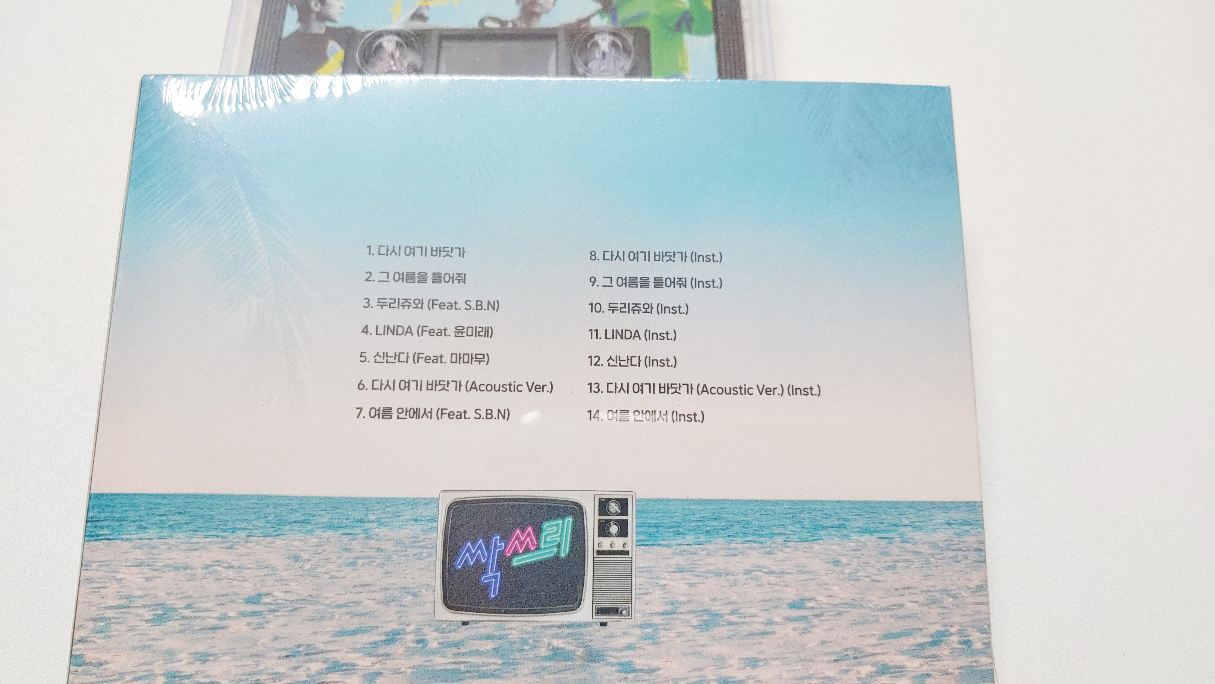 다음은 드디어 CD와 테이프가 보입니다. CD는 요즘에도 가끔씩 구매를 했는데, 테이프는 정말 오랜만입니다. 노래는 CD와 테이프 동일하게 들어 있습니다. 다시여기 바닷가, 그 여름을 틀어줘와 솔로곡들이 들어 있습니다. 다시여기 바닷가도 좋지만, 개인적으로 그 여름을 틀어줘라는 곡을 제일 좋아 합니다. 타이틀곡이 되지 않아 조금은 아쉬웠습니다.
