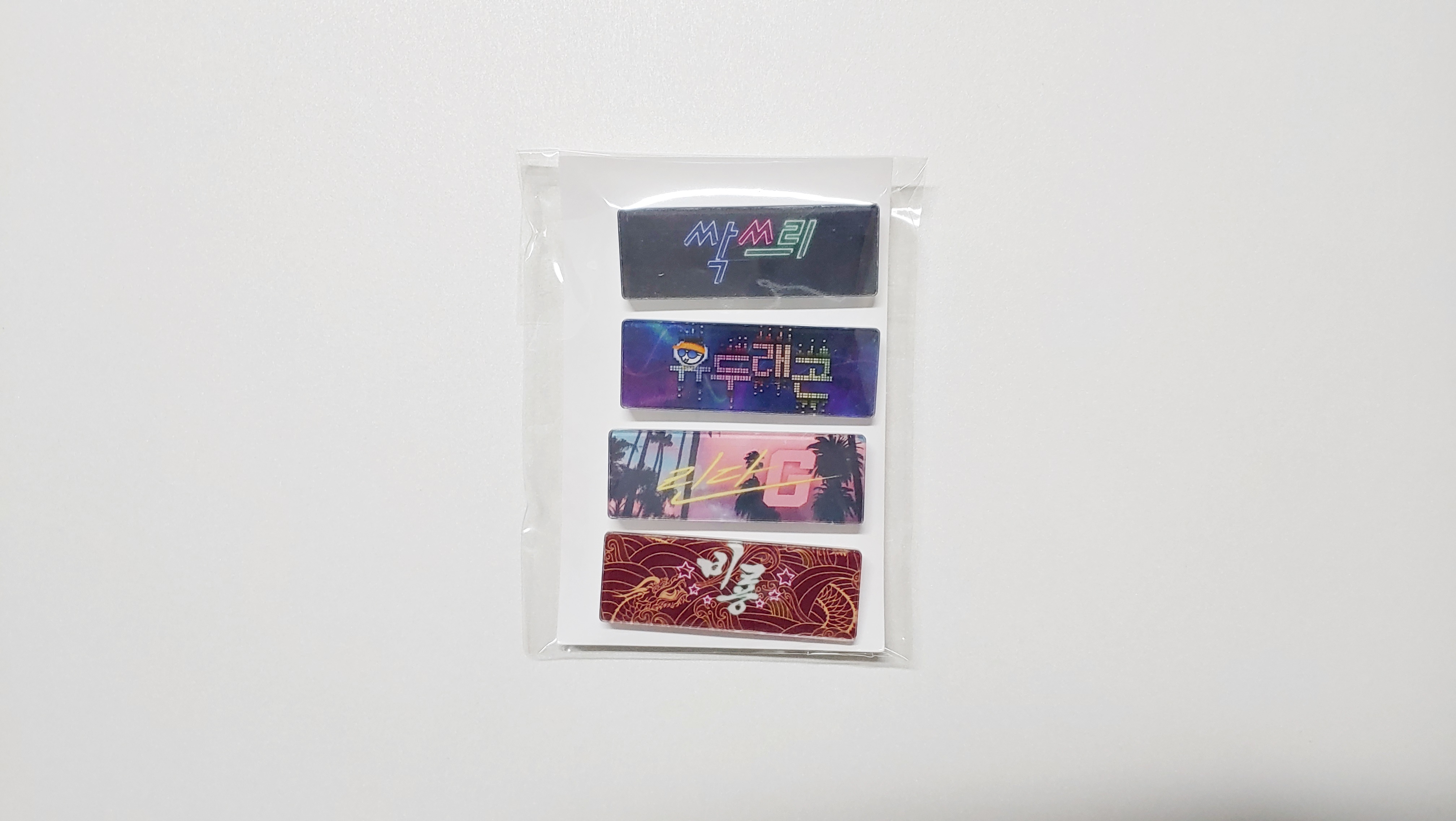 CD와 테이프에서 끝나는 줄알았는데, 또 있습니다. 마지막으로 싹쓰리, 유두래곤, 린다G, 비룡의 명찰이 있습니다. 창피해서 직접 하고 다니진 않을거 같지만 기념품으로 좋아 보입니다. 싹쓰리 앨범의 구성은 정말 놀랍도록 꽉차있습니다. 구입을 후회하지 않을거 같습니다.