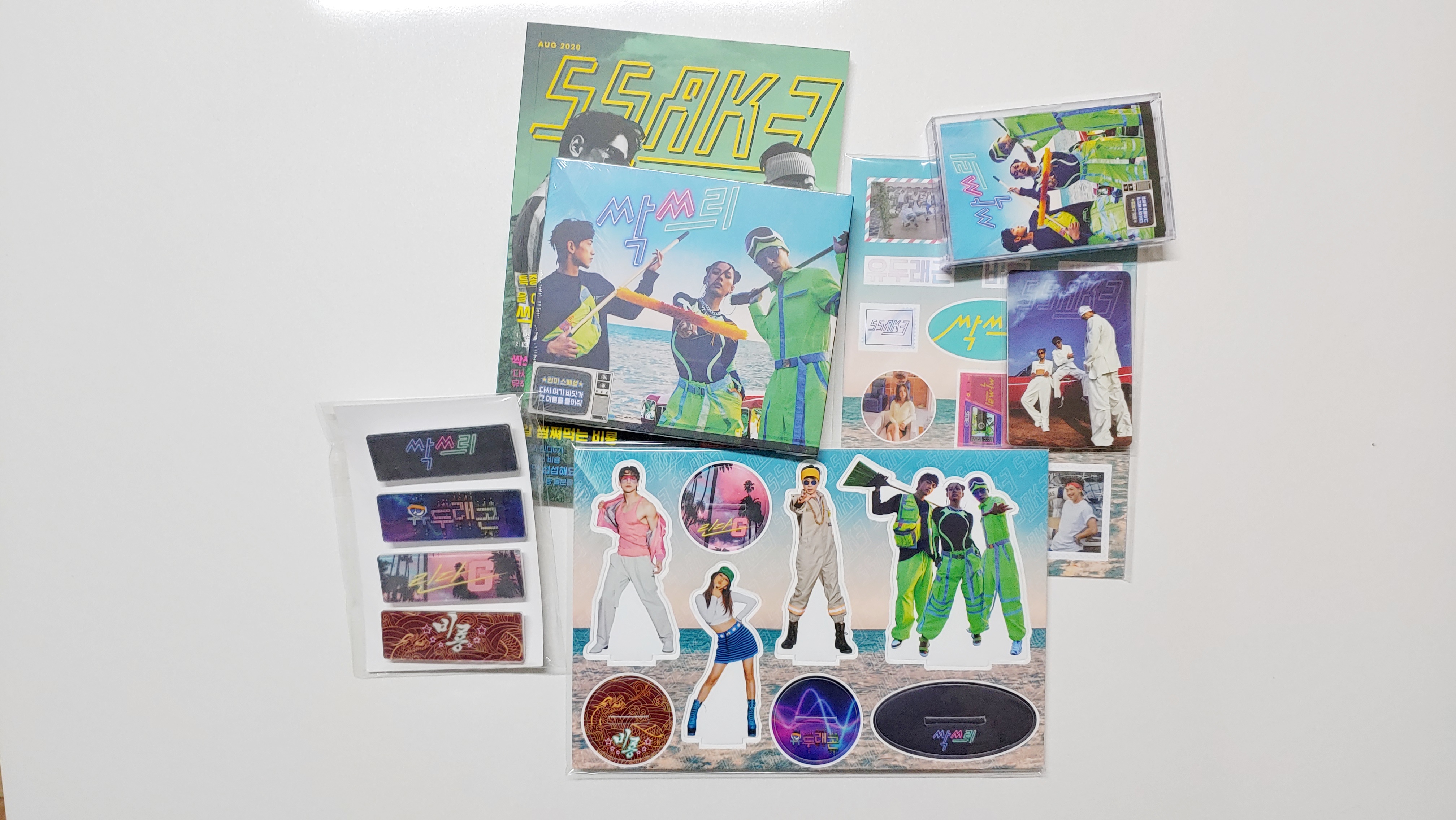 싹쓰리 앨범 패키지입니다. 정말 꽉 들어찬 구성이 마음에 듭니다. 싹쓰리 노래는 스마트폰으로 듣고, CD도 거의 들을일이 없고, 테이프를 듣기 위해서는 카세트 플레이어를 별도로 구매해야 합니다. 그래도 올해 여름 가장 많은 즐거움을 준 싹쓰리를 기념하기 위해 앨범을 구매했습니다. 요즘 상황을 봐서는 겨울에도 콘서트를 열기는 어렵겠지만, TV에서 2집 활동하는 모습을 보고싶네요.