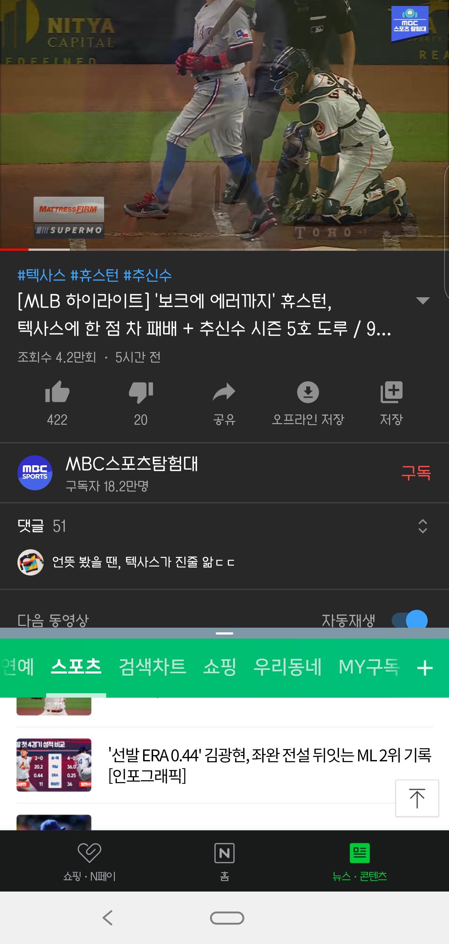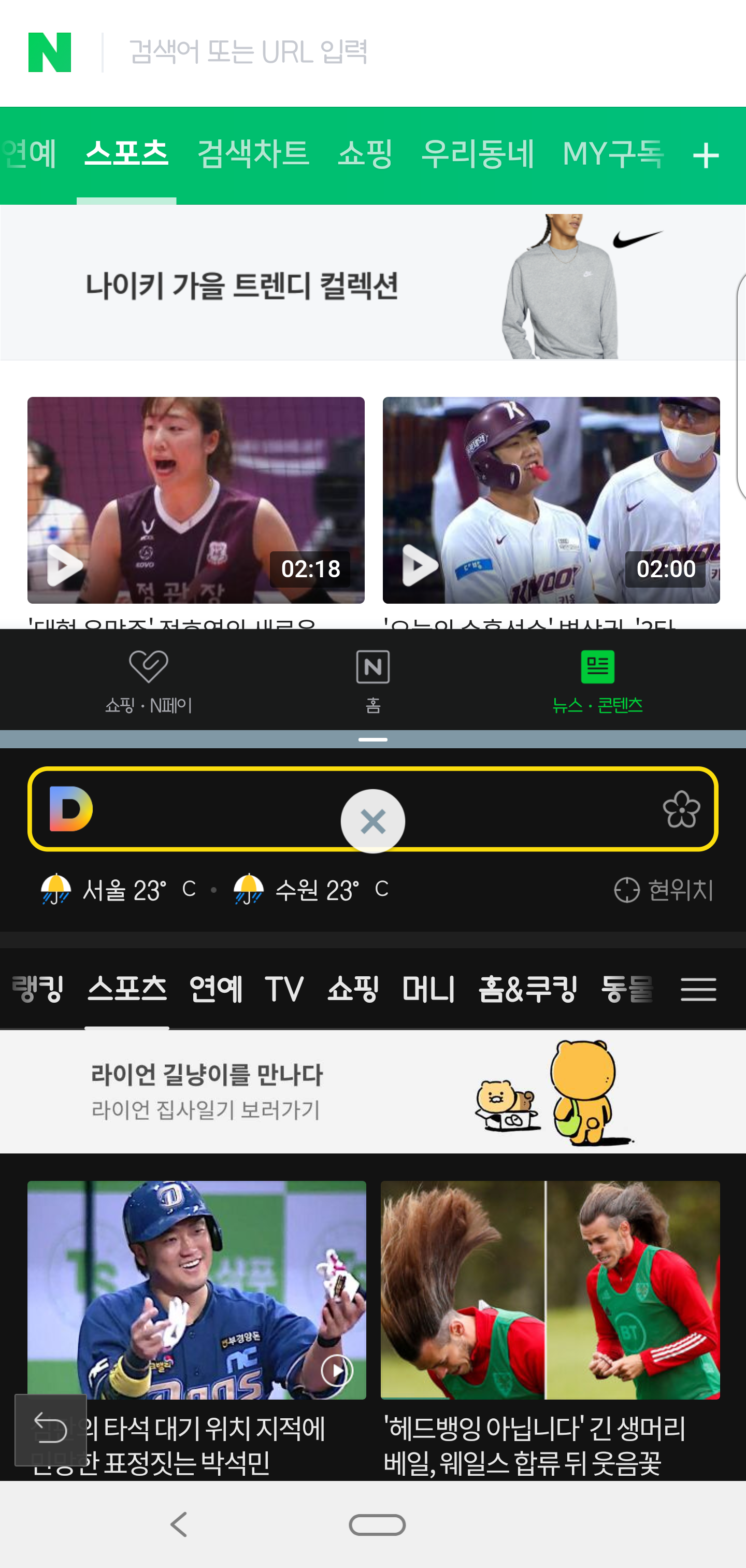 중간에 경계선을 클릭하면 X모양이 나오는데, 이것을 터치하면 멀티 윈도우가 종료됩니다. 종료되면 원래의 화면으로 돌아갑니다.