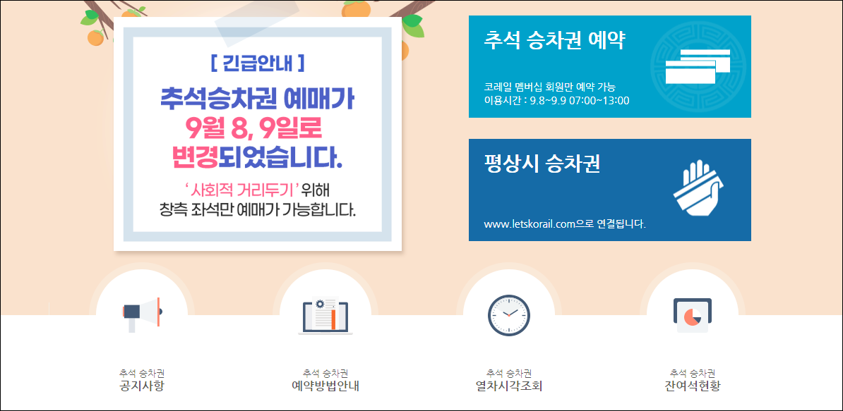 코로나 재확산으로 어수선하고 잘 못하면 명절에 고향을 가지 못하는 경우도 발생할 수 있습니다. 그래도 확진자 수가 줄어 들고 있어 미리 2020 추석 기차표를 예매로 준비하시기 바랍니다.
