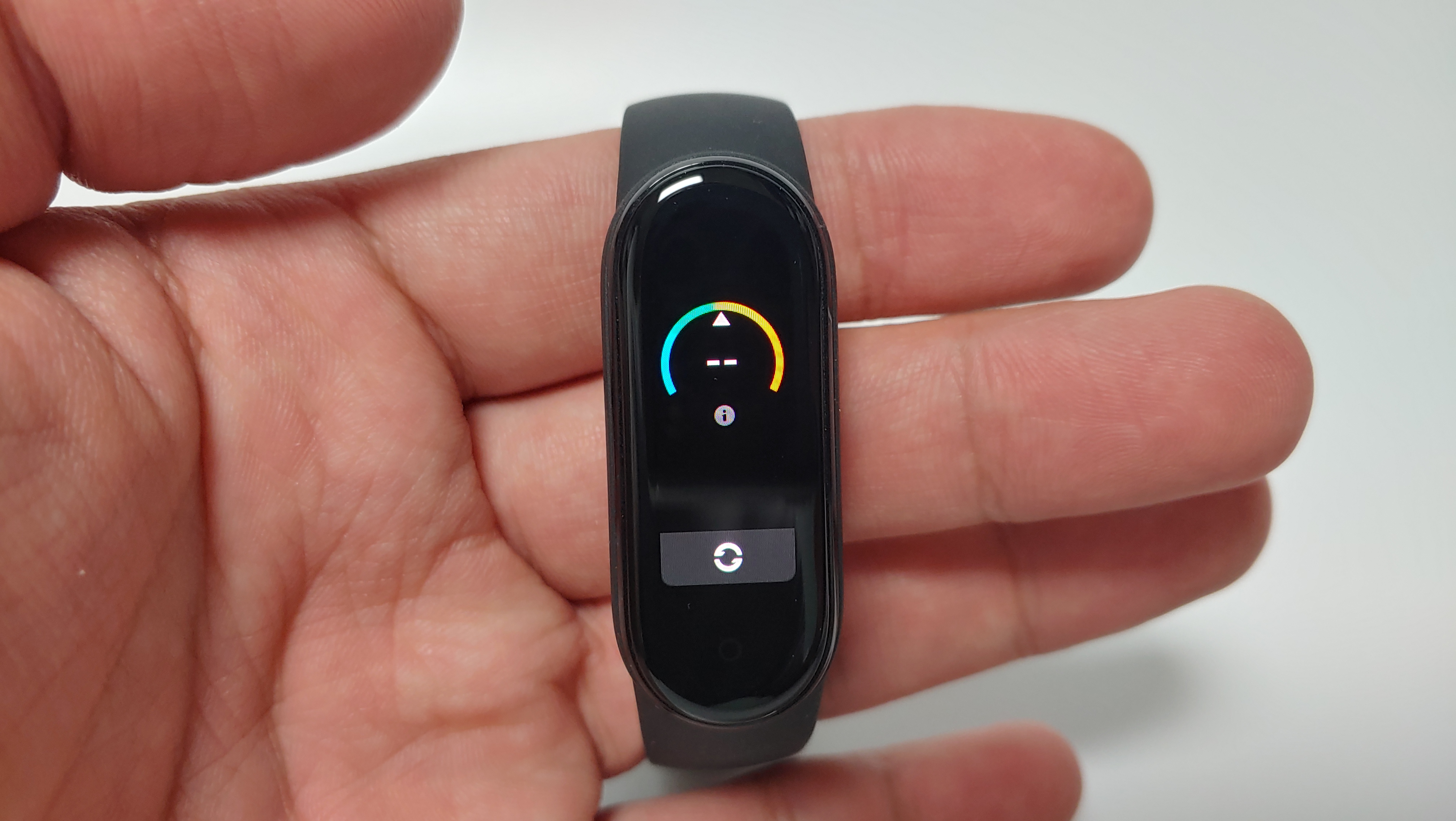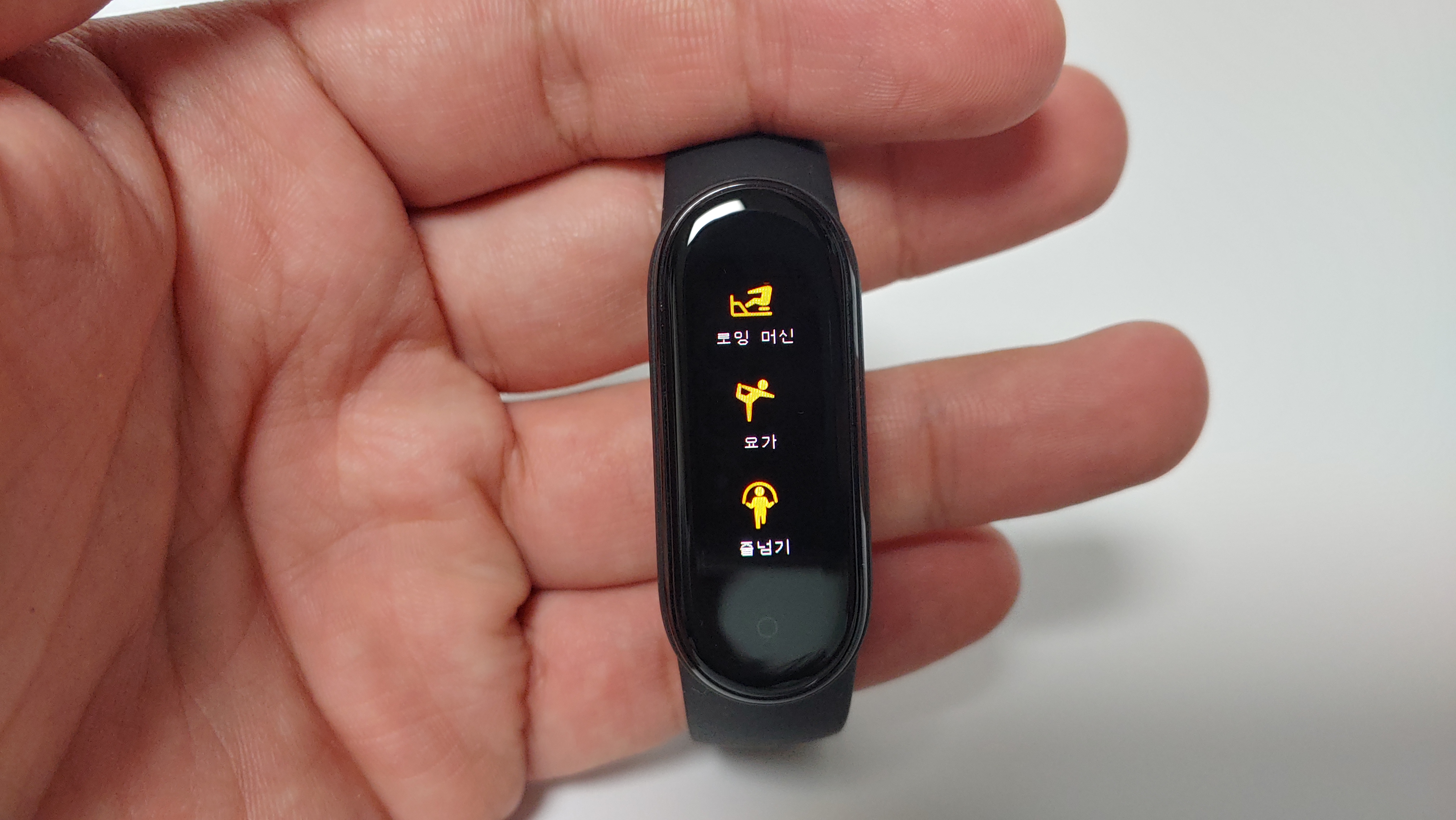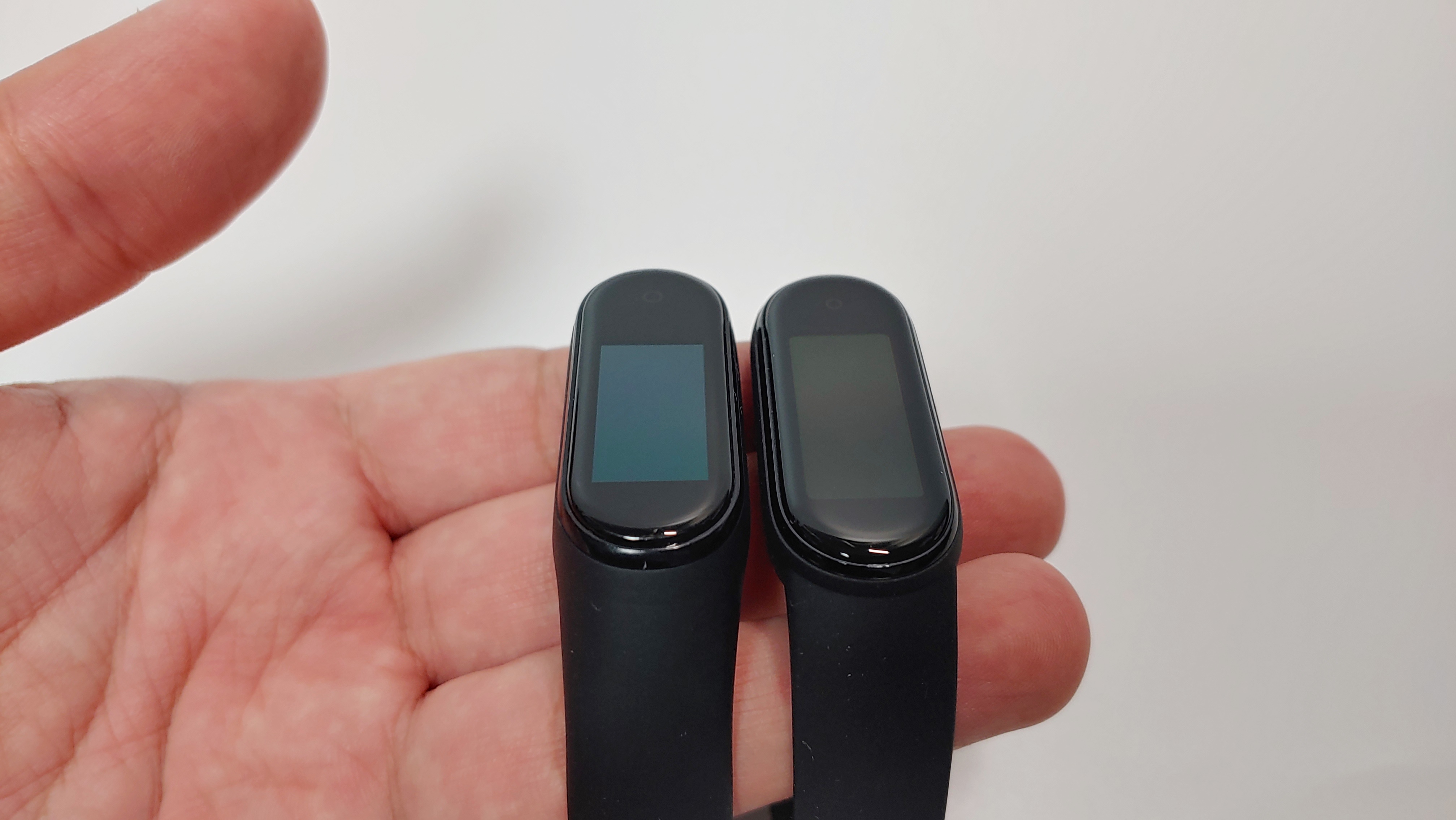 화면이 0.95인치에서 1.2인치로 커졌습니다. 수치를 보면 상당히 큰 차이가 나는데 언뜻 보기에는 차이를 잘 모르겠습니다. 그래서 미밴드4와 비교를 해봤는데, 화면 크기가 확연하게 차이가 나긴 합니다. 그렇지만 실사용에서는 화면이 커졌다는게 크게 느껴지진 않습니다. 아주 미세한 차이지만 화면 테두리가 살짝 둥글해 졌습니다.