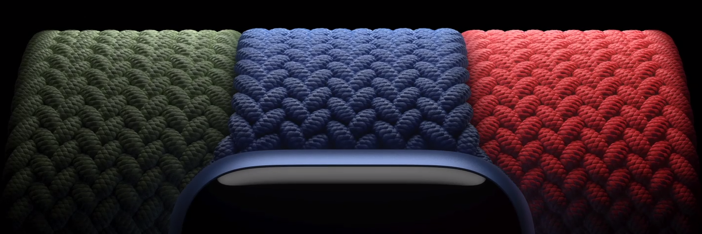 솔로 루프는 부드럽고 신축성이 뒤어난 실리콘 고무로 가볍고 편안한 착용감을 줍니다. 브레드 솔로 루프는 언뜻 보기에는 실로 만든거 같은데, 16.000가닥이 넘는 재활용 폴리에스테르 필라멘트사를 실리콘 스레드와 엮어 만듭니다. 착용감이 편해진것은 괜찮은데 이번에는 9가지 스트랩 사이즈 중 한가지로 골라야 합니다. 솔로 루프와 브레드 솔로 루프를 사진으로 보면 일체형으로 보입니다. 사이즈 선택에 자신이 없을 경우 기존과 같은 스포츠 밴드를 선택할 수 있습니다.