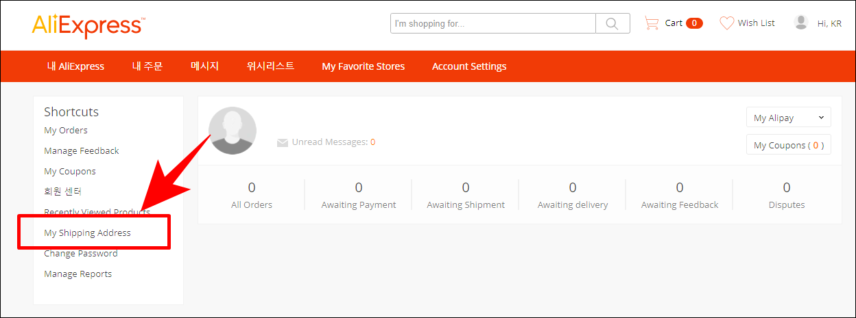 내 Aliexpress에 들어가면 My Shipping Address 메뉴가 있습니다. 이곳에서 이름, 주소, 전화번호, 통관부호를 입력해야 합니다. 주소의 경우 시 또는 도 선택은 한글로 되어 있어 편리하게 선택을 할 수 있습니다. 세부 주소와 이름은 모두 영문으로 작성을 해야 합니다.