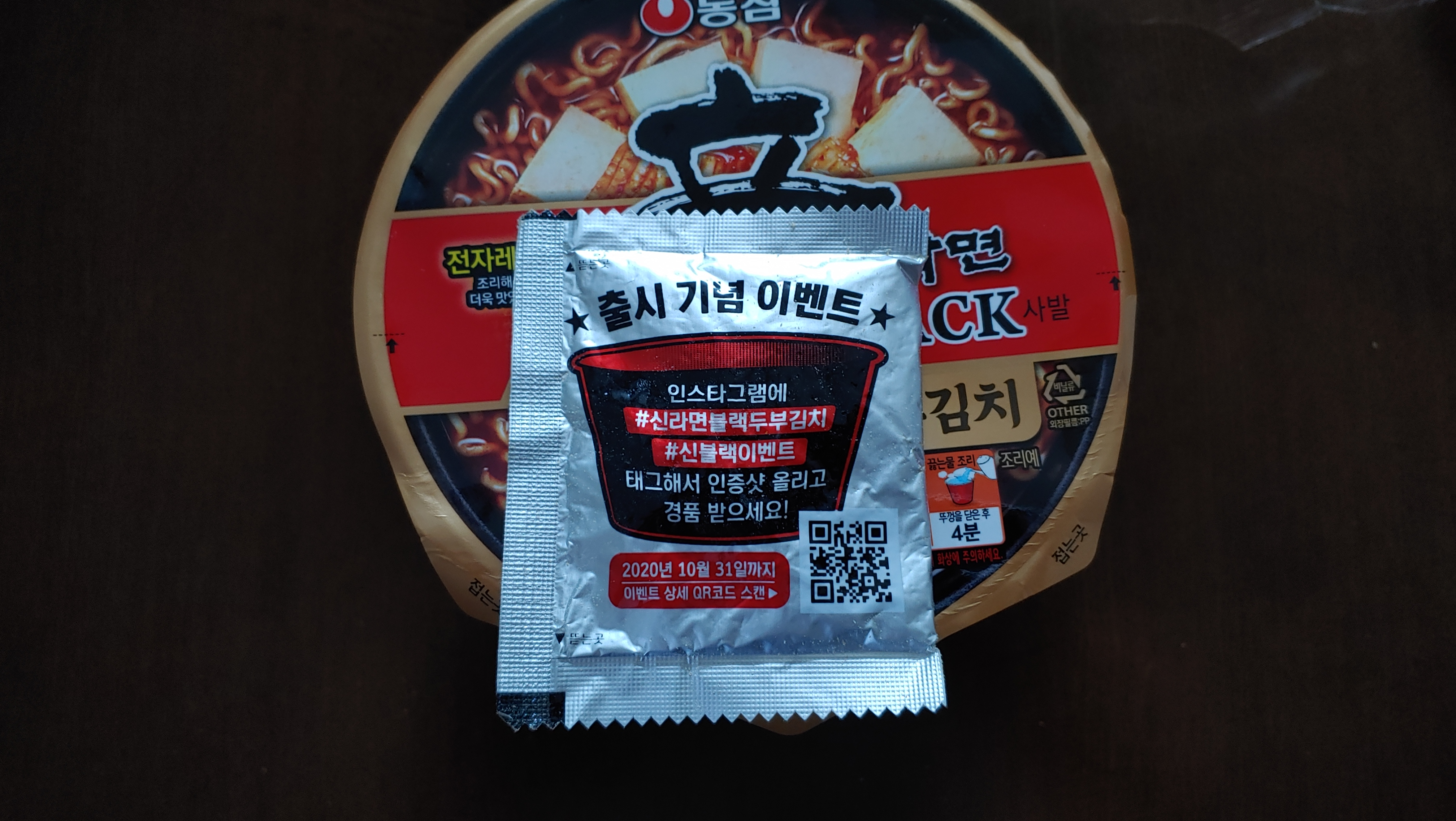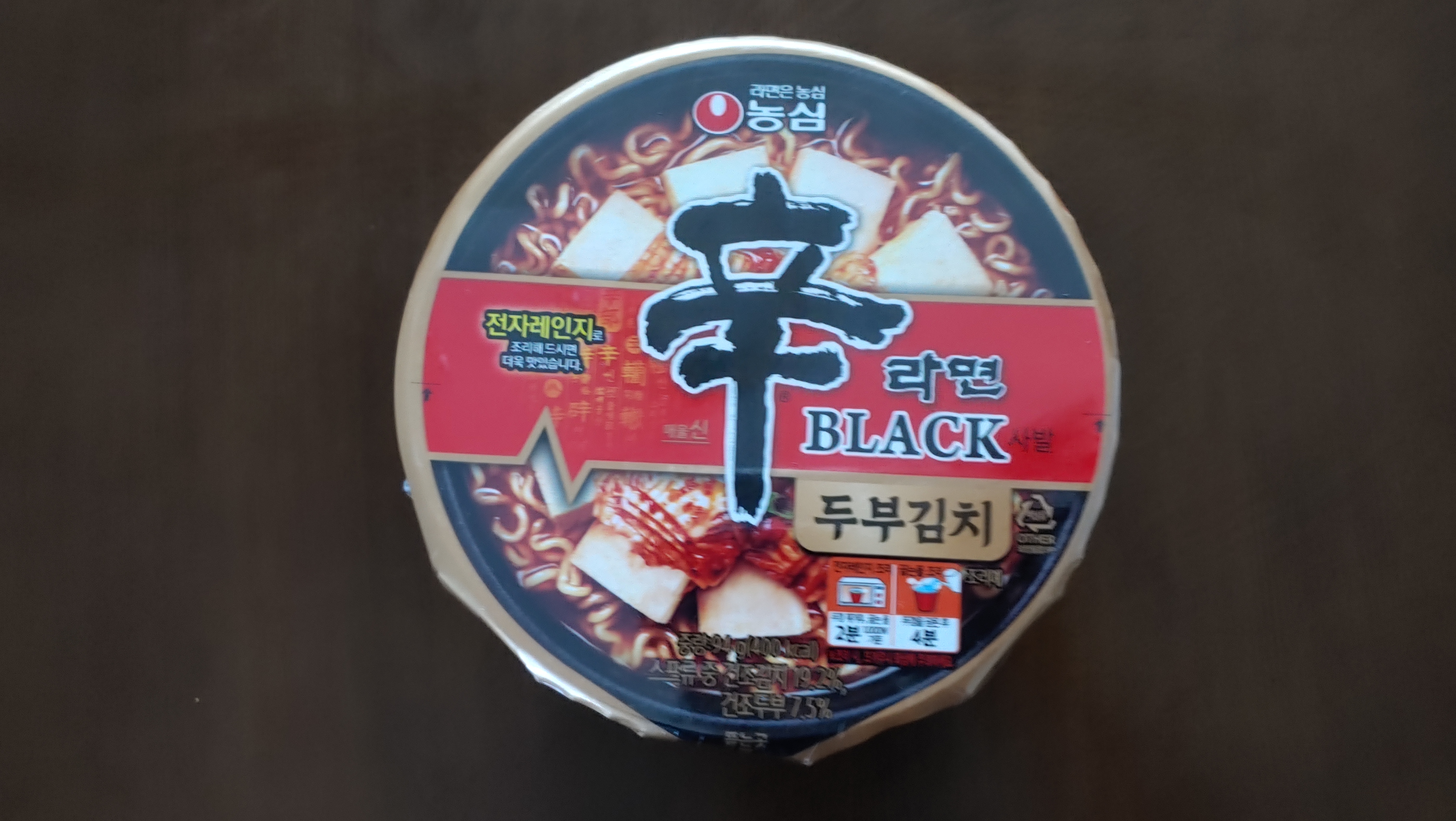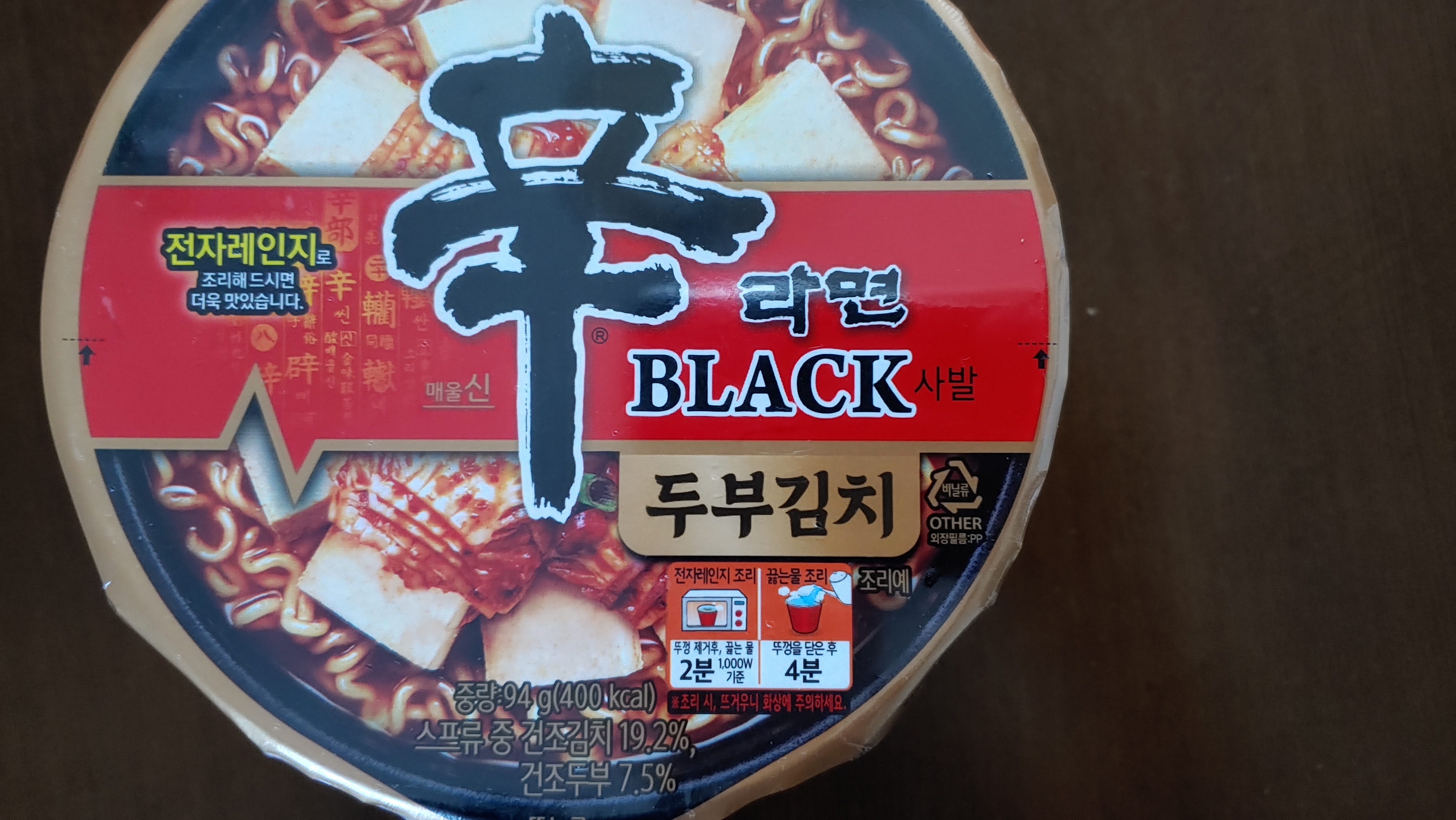 일단 외관을 보면 기존 블랙 디자인과 크게 다르지 않습니다. 거기에 두부김치라는 멘트가 강죄되어 있네요. 예전에는 컵라면을 끓는 물에 부워 먹기만 했는데, 요즘은 끓는 물을 붙고 전자레인지에 돌려 먹기도 하는데 맛이 괜찮은거 같습니다. 신라면 블랙 두부김치 역시 전자레인지를 이용하라는 안내가 되어 있네요.