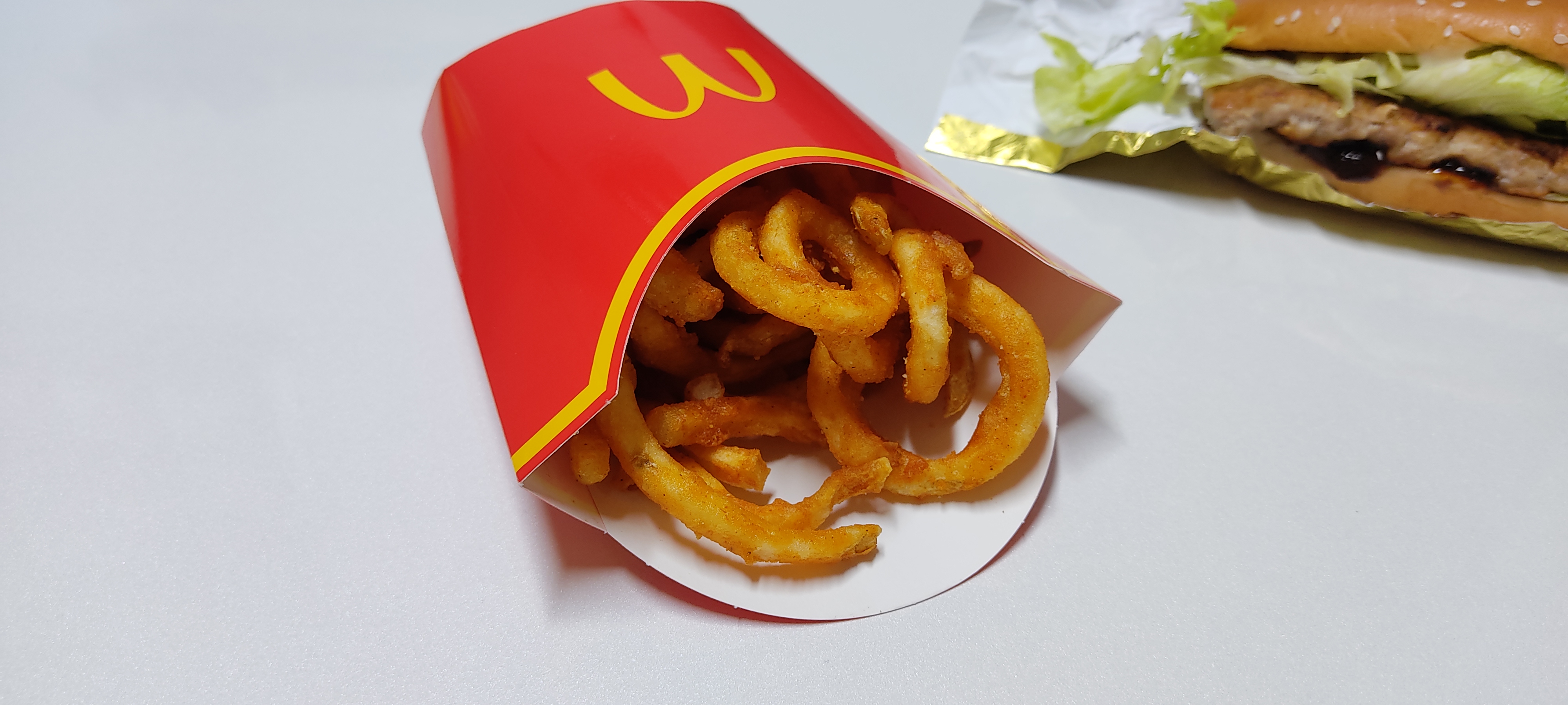 맥도날드 행운버거의 주인공은 햄버거가 아니라 컬리후라이입니다. 일반 감자튀김과는 다르게 바삭하고 매콤 달콤한 양념이 뭍혀 있습니다.
