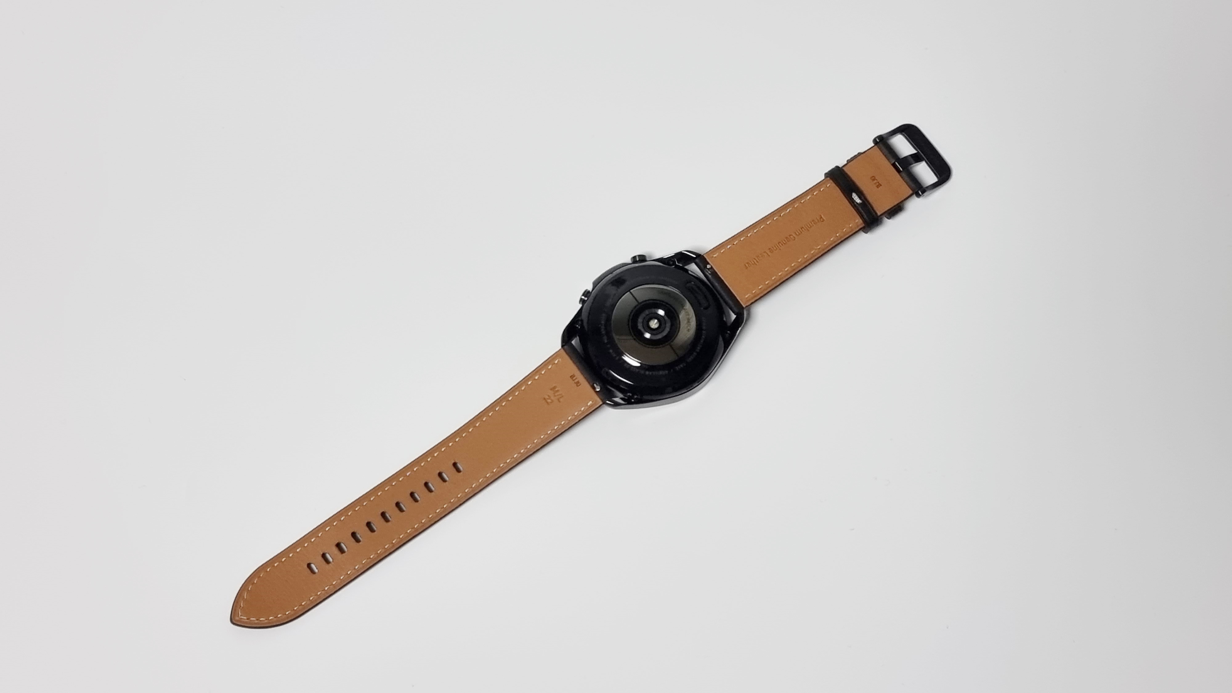 갤럭시 워치3 45mm 블랙 색상은 시계와 시계줄 모두 블랙입니다. 블랙으로 통일된 색이 아주 깔끔합니다. 뒷면은 시계는 블랙이지만, 시계줄은 갈색입니다. 시계 뒷면을 보니 갈색 시계줄도 잘 어울릴거 같아 나중에 별도 구입해야 겠네요.
