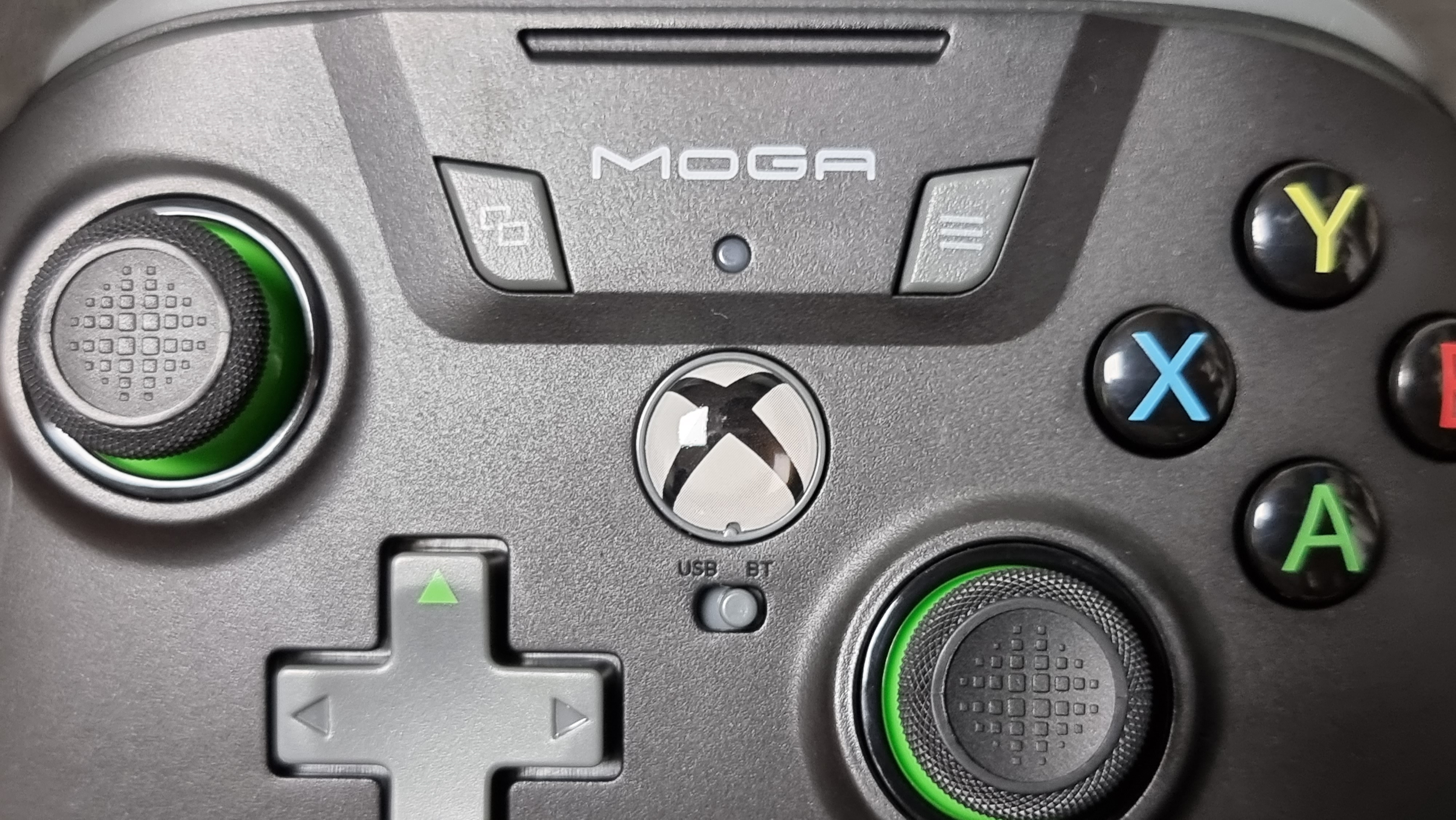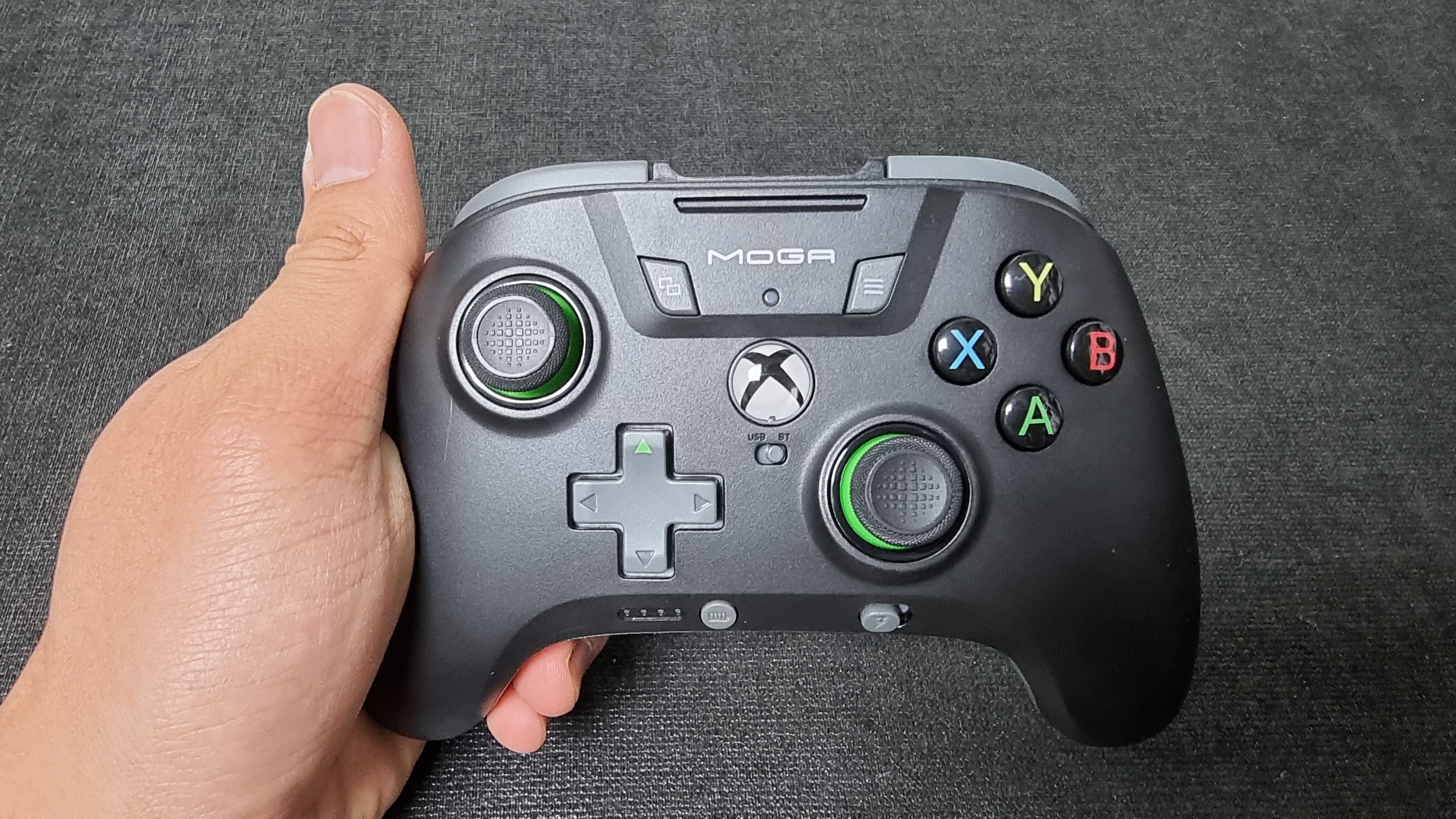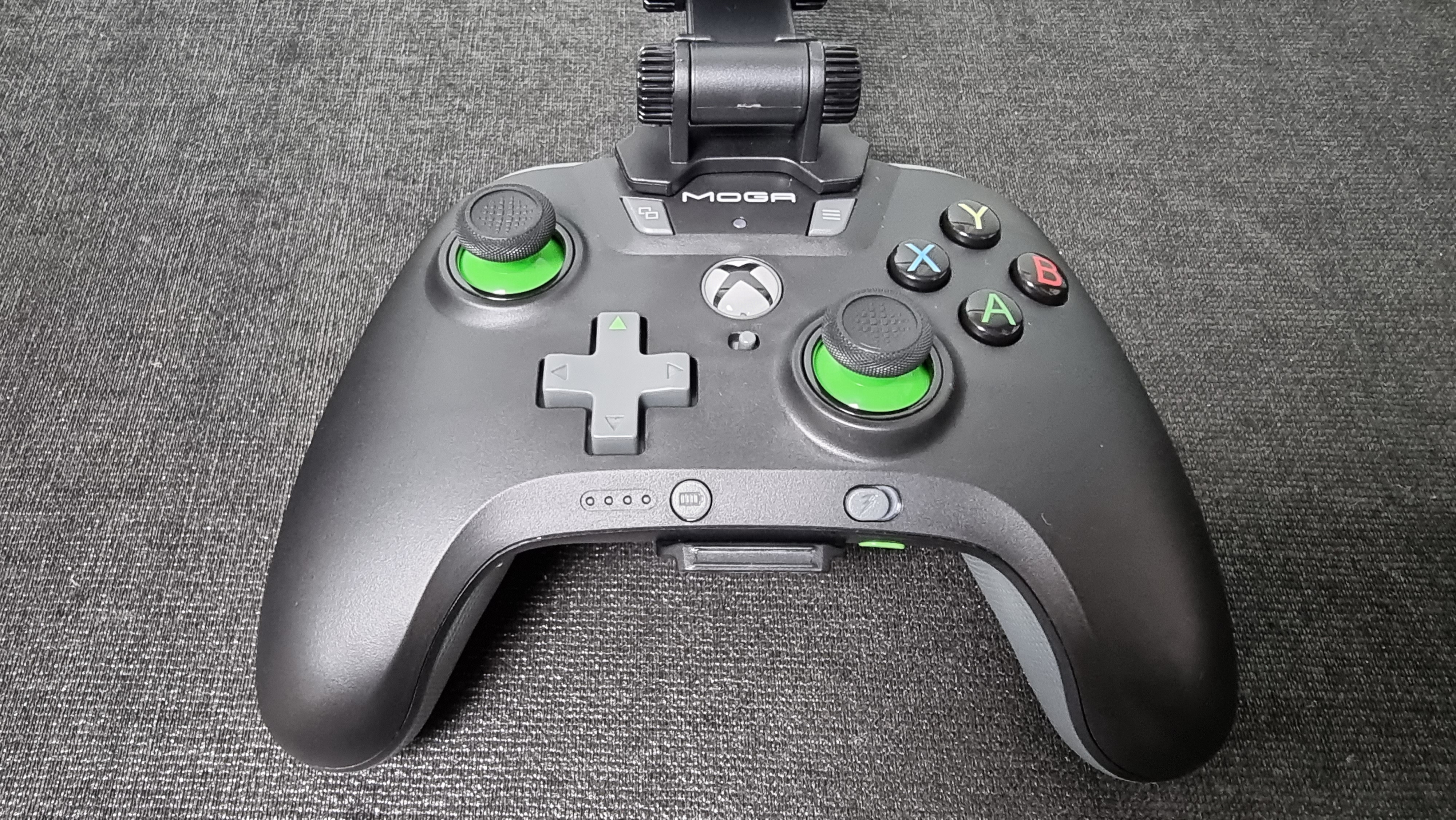 MOGA XP5-X Plus 컨트롤러 본체를 살펴보겠습니다. XBOX 게임패드와 상당히 비슷하게 생겼습니다. 버튼배치는 물론 디자인과 색상이 거의 동일합니다. 그래서 처음에 엑스박스 공식 컨트롤러로 착각했습니다.