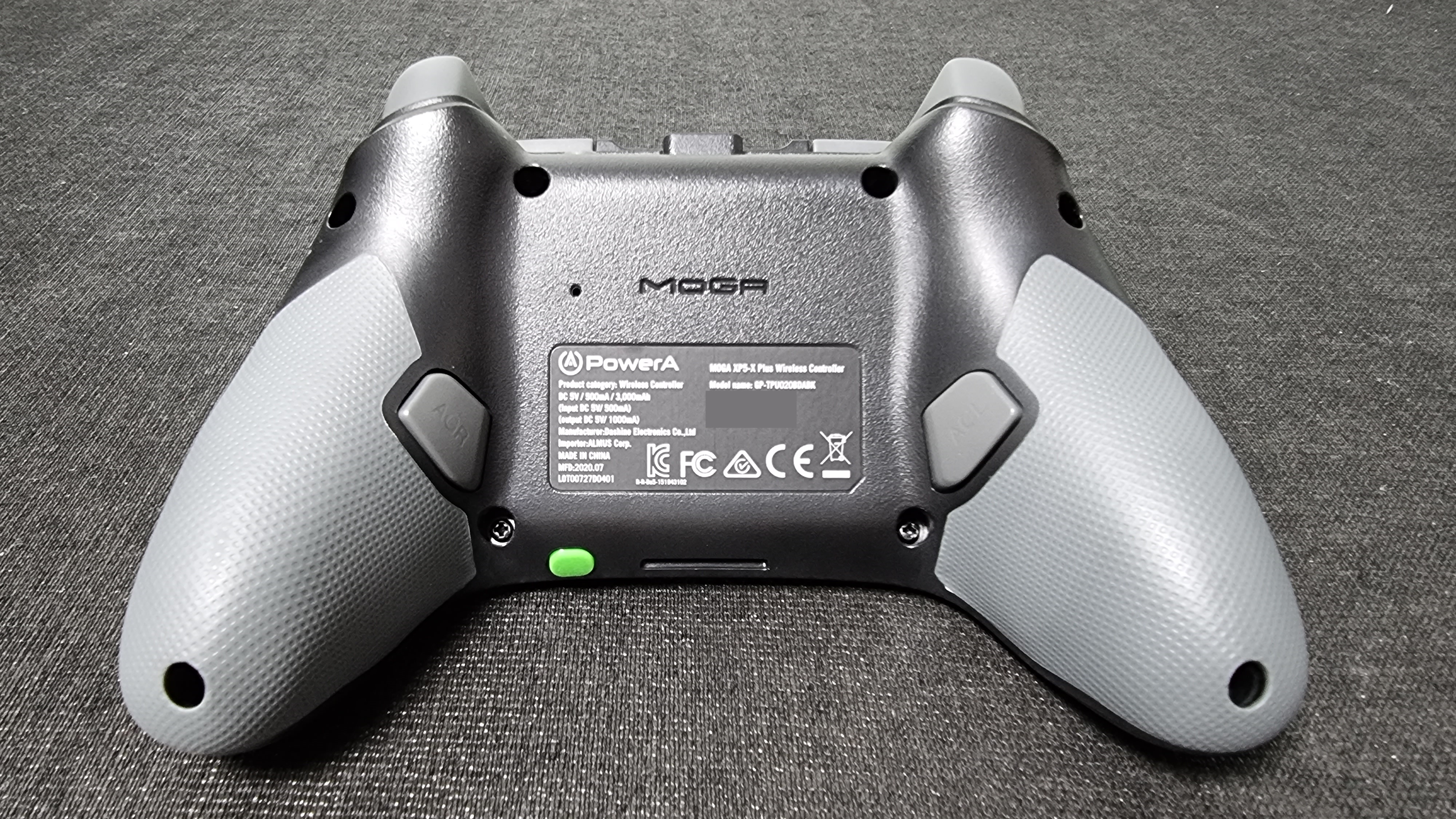 게임패드 상단에 A포트와 5핀포트가 있습니다. 충전은 5핀 포트로하며, A포트는 스마트폰을 충전할 때 사용하면 됩니다. 요즘 많이 사용하는 C포트가 아닌 5핀이 들어간건 아쉬운 부분입니다. 상단 버튼은 물론 컨트롤러 손잡이 쪽에도 버튼이 있습니다.