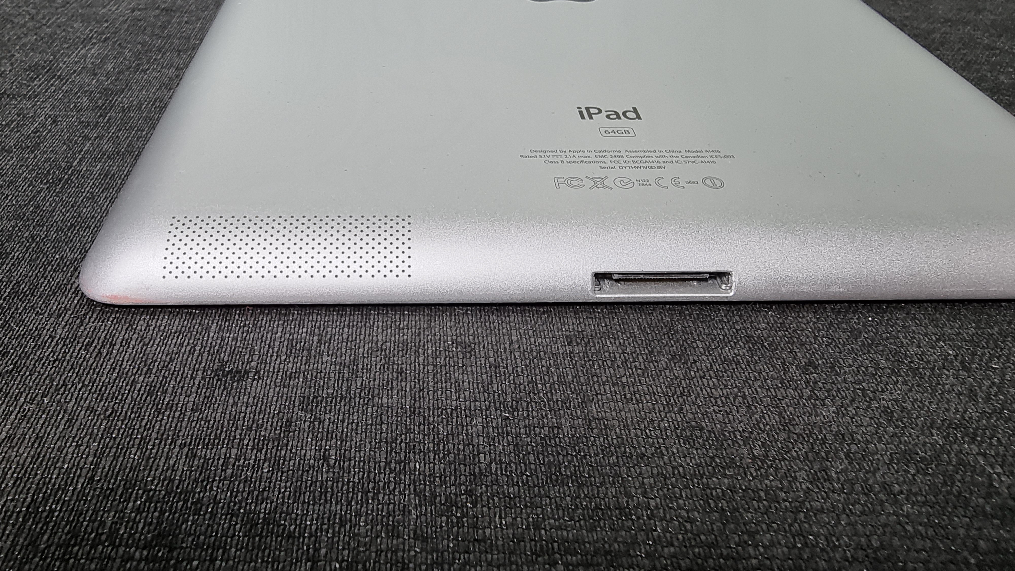 하단에는 충전포트와 스피커가 있습니다. 최근 아이패드에는 라이트닝이나 C포트가 들어가는데, 지금은 사용하지 않는 아주 넓은 포트가 있습니다. 스피커 위치도 지금보니 특이한데, 하단과 뒷면 경계에 있습니다. 노래를 들어 봤는데, 사운드는 지금 들어도 괜찮네요.