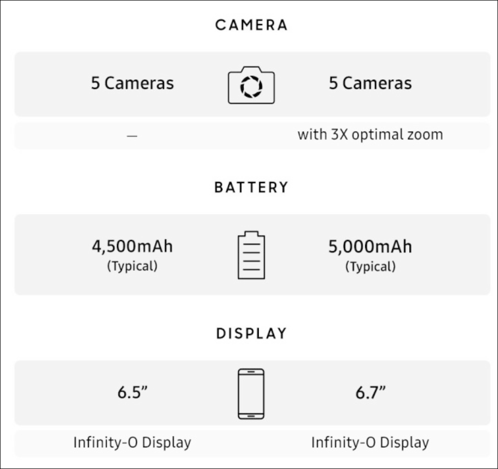□ 디스플레이 : 6.7인치 슈퍼 AMOLED, 2400x1080해상도, 90Hz 주사율, 800니트 밝기