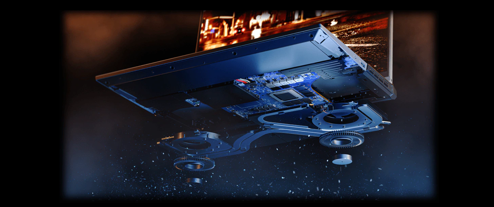 노트북의 발열을 잡지 못하면 CPU와 GPU성능이 떨어지는 스로틀링 현상이 발생하기 때문에, 노트북 발열관리가 중요합니다. 지능형통풍 시스템, 터보 차저 듀얼팬, 키보드 아래 통풍구, 쿼드 채널 배기 시스템을 통해 노트북을 시원하게 만들어줍니다. 성능저하 없이 오랫동안 게임을 즐길 수 있습니다. 필요한 경우 Q컨트롤을 통해 펜 속도와 전압을 조정해 배터리 사용 시간을 늘릴 수 있습니다.