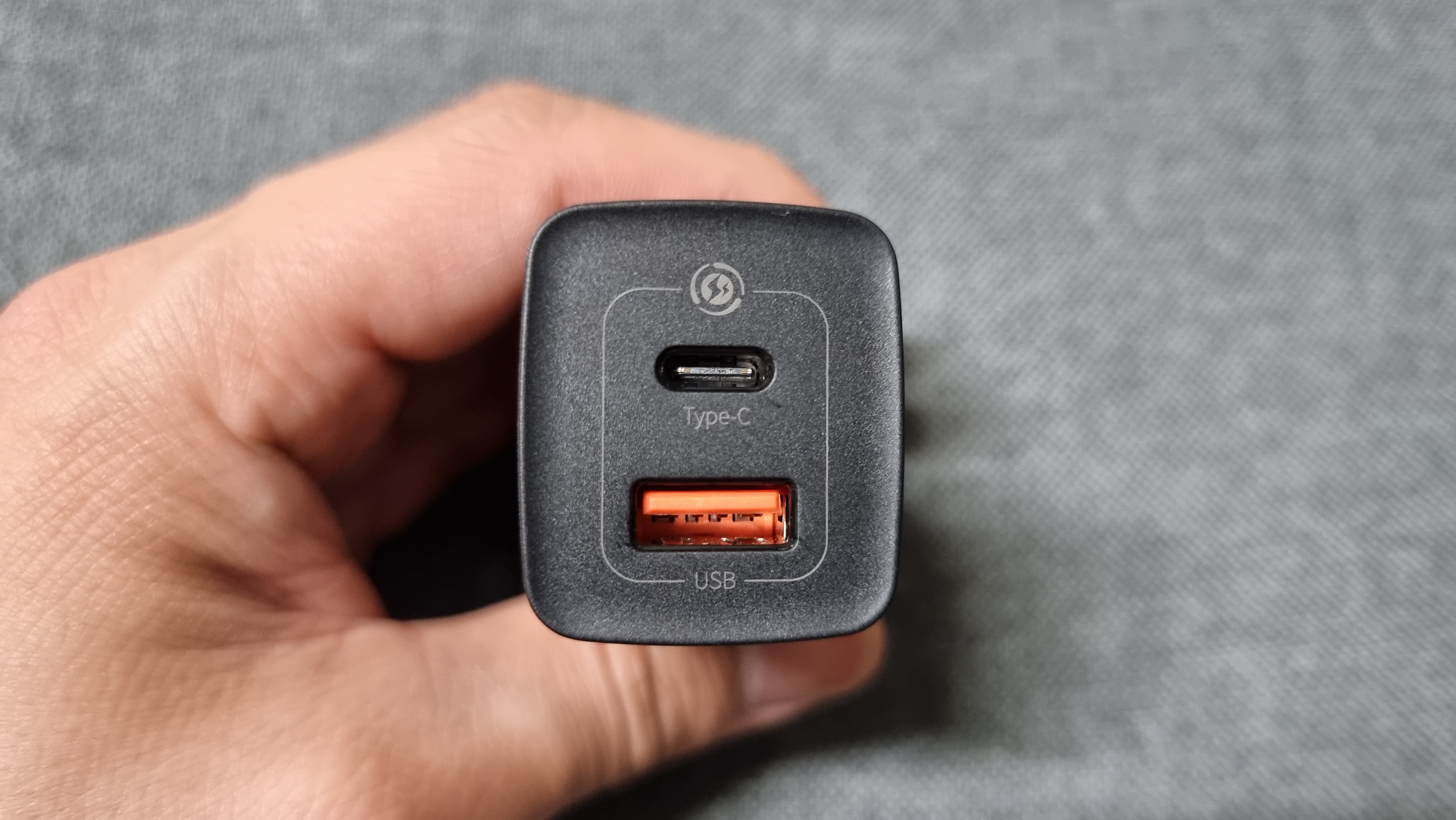 제품에도 65W 표시가 되어 있으며, 포트 구성은 타입 C포트와 타입 A포트 2개입니다. 두개 최대 충전 속도가 다른데, C포트는 최대 65W까지 충전이 되며, A포트는 최대 45W까지 충전이 가능합니다. C포트와 A포트 모두 PD충전을 지원합니다.