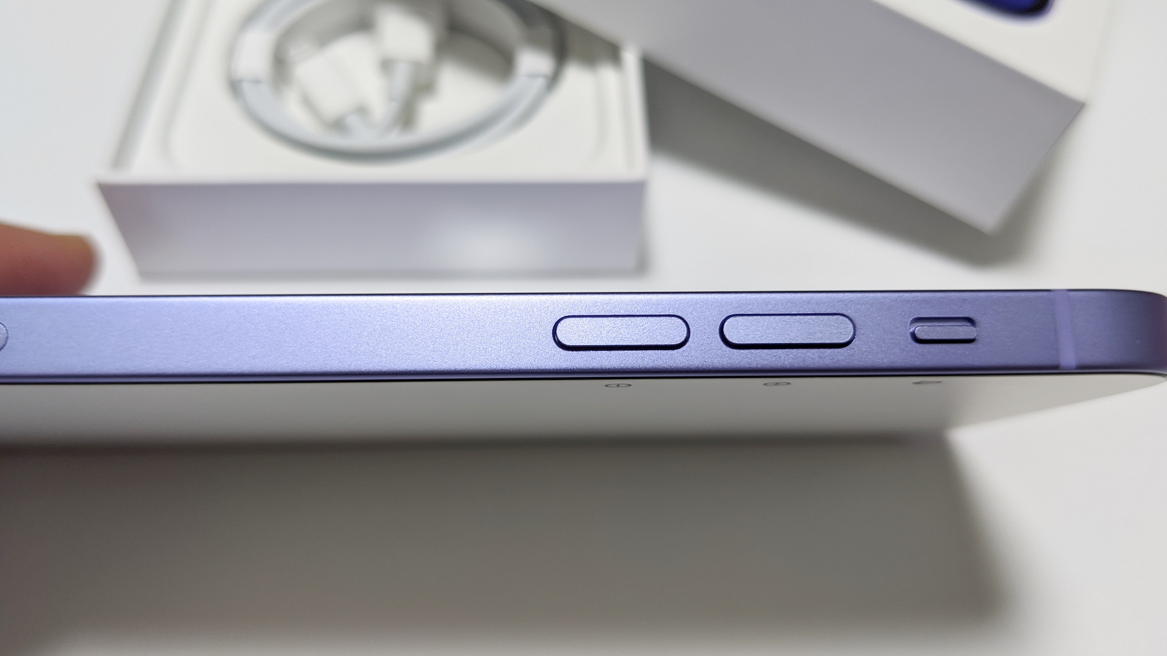 뒷면은 물론 측면도 퍼플색으로 색상을 맞췄으며, 측면이 좀더 진한 색으로 되어 있습니다. 한가지 걱정되는건 아이폰12 출시 이후 측면 색상 변질 이슈입니다. 측면 색이 빠지는 경우가 발생하는데, 새로운 제품인만큼 측면 색상 변질이 안되었으면 좋겠네요.