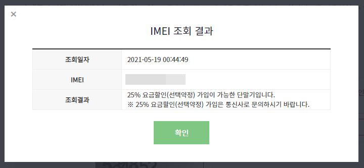 IMEI번호를 입력하면 바로 결과를 확인할 수 있습니다. 중고폰을 구입하고 나서 확인을 하기보다, 판매자에게 선택약정이 가능한지 먼저 문의를 해보고, 핸드폰을 받은 후 다시 한 번 확인을 해보세요.