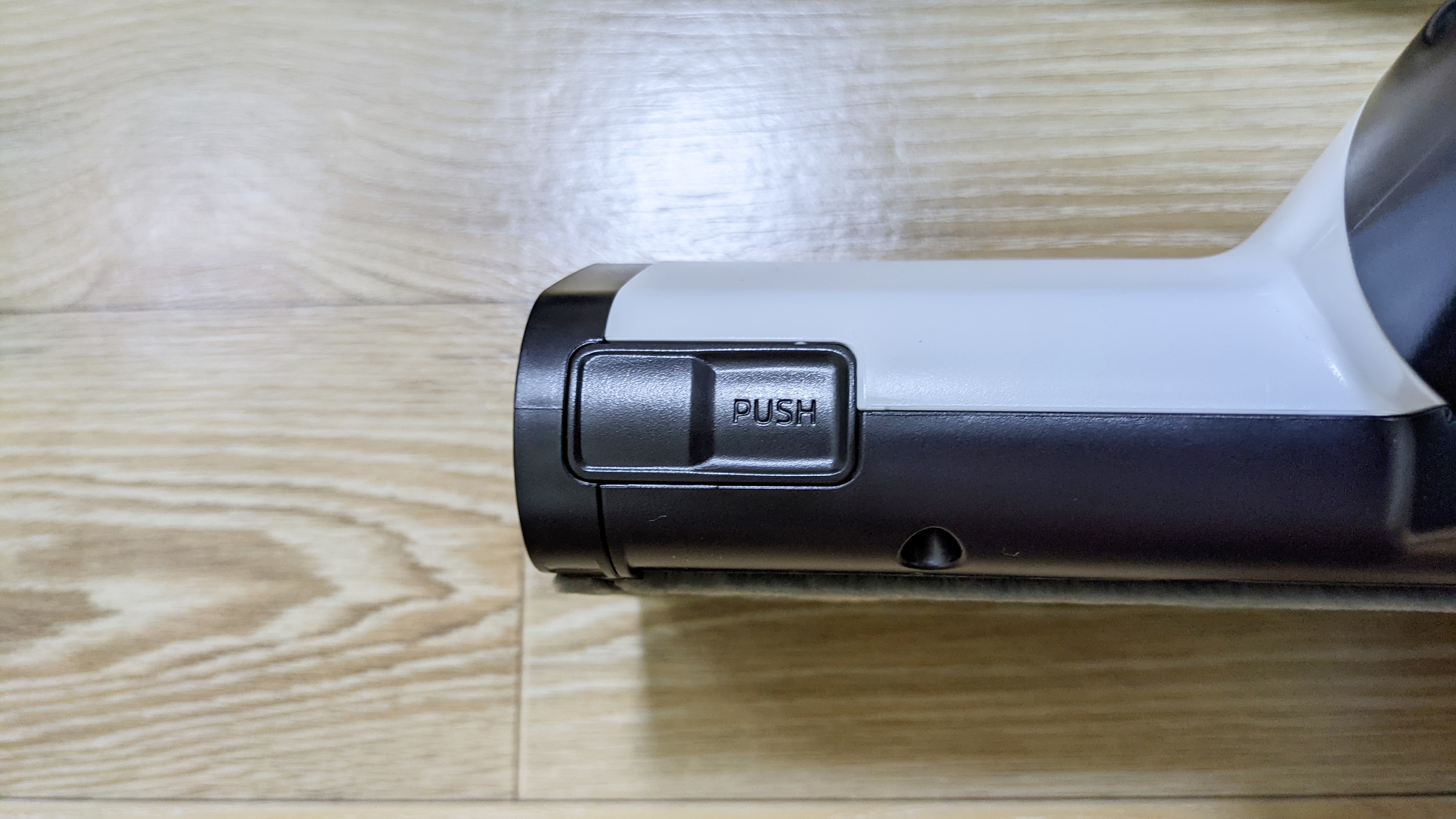 손잡이는 손에 딱맞게 되어 있어 그립감이 좋습니다. 청소기 높이는 사용자에 맞게 높이를 조절할 수 있습니다. 손잡이 부분에 모터와 배터리 등이 있어 무게감이 있습니다. 청소기 해드를 바닥에 놓고 있어 무게가 어느정도 분산이 되지만, 그래도 사용하는데 무겁단 생각이듭니다.