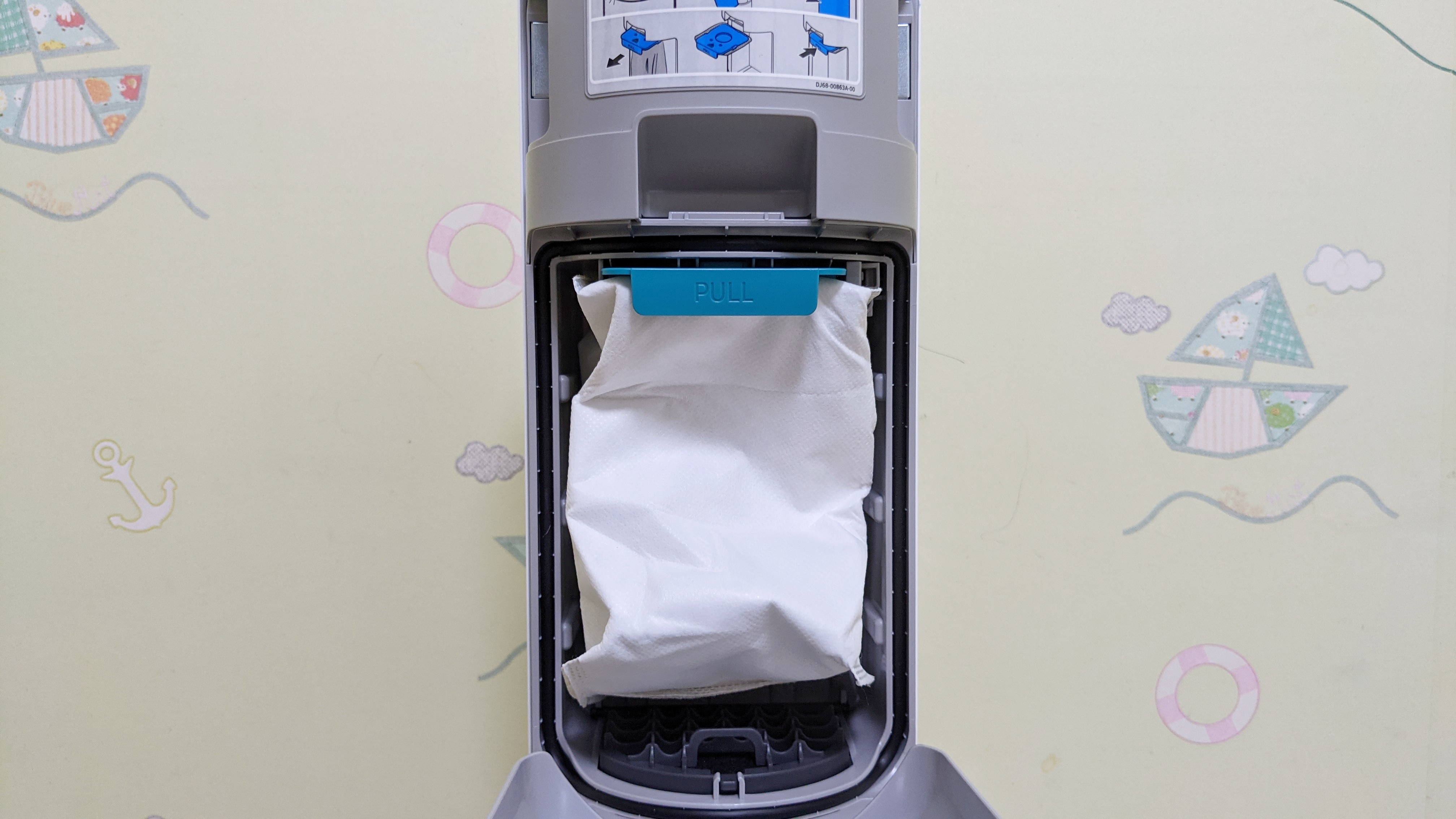 청정스테이션 뚜껑을 제거하면 안쪽에 먼지봉투가 들어 있습니다. 먼지봉투는 추가로 3개 들어 있지만, 다 쓰게 되면 별도로 구입을 해야합니다. 위생을 위해 플라스틱통 대신에 바로 버릴 수 있는 먼지봉투를 선택하거 같네요.