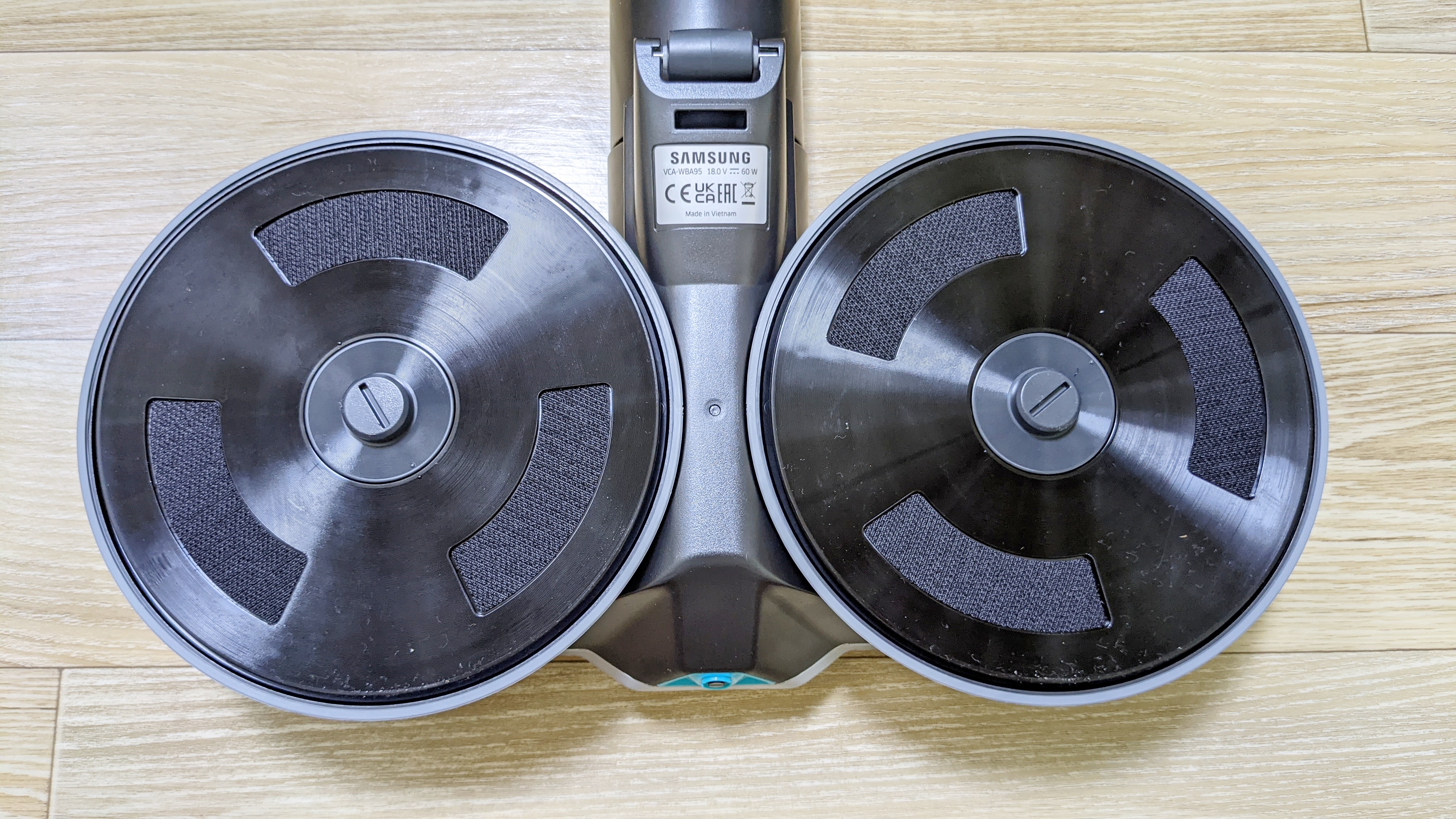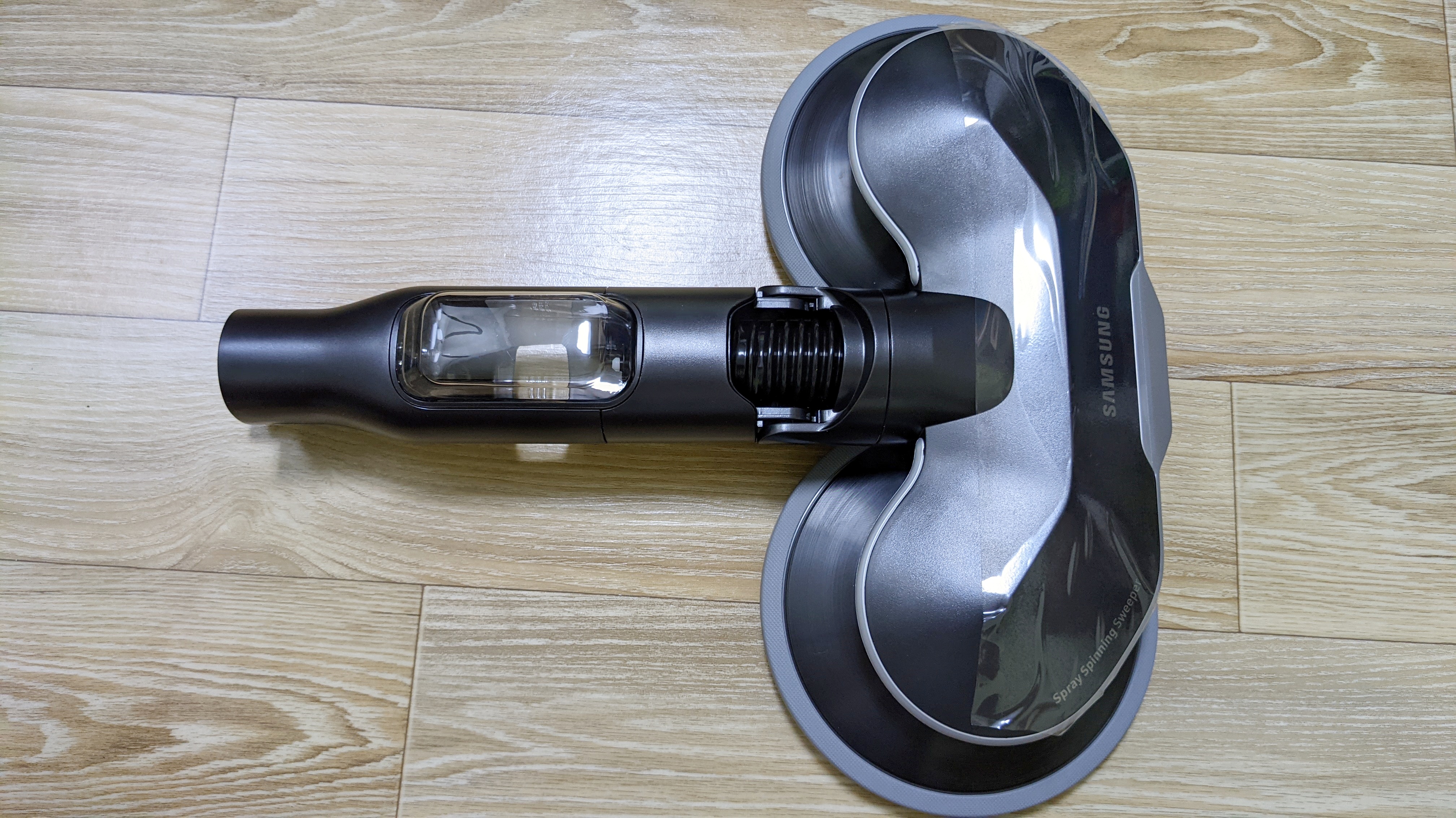 물걸레 브러시입니다. 구형 제트에도 물걸레 브러시가 있는데, 물을 분사하는 기능이 없습니다. 그래서 신형에는 물을 분사하는 기능이 추가되었습니다. 물걸레는 원형으로 돌아가는 방식입니다.