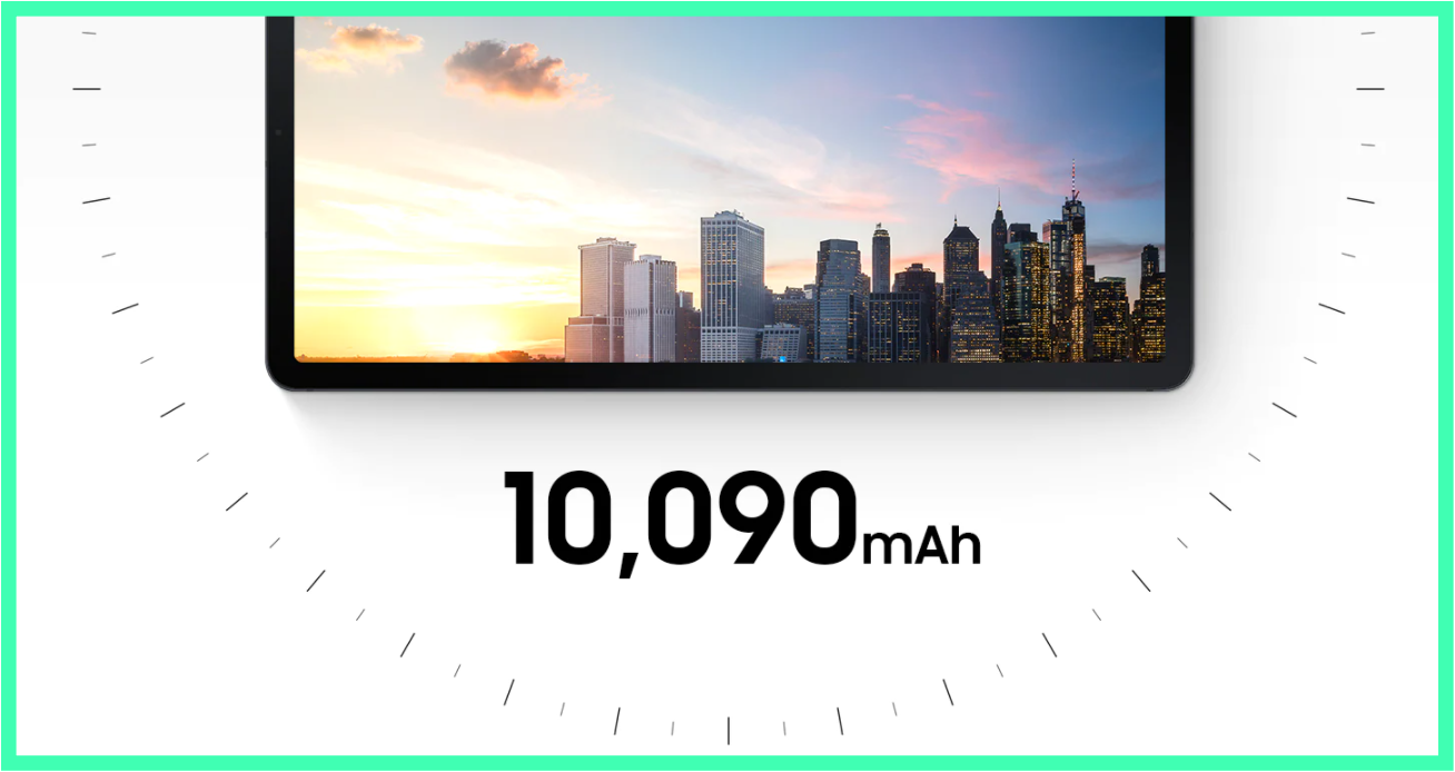 태블릿으로 가장 많이 하는 것이 영상을 보는 일인데, AKG 튜닝된 4개의 스피커가 들어가 사운드는 좋을것으로 보입니다. 배터리는 10090mAh로 아주 큰 용량이 들어가며, 45W 고속충전을 지원합니다. 배터리를 완전히 충전하기까지 3시간 10분이 소요됩니다.